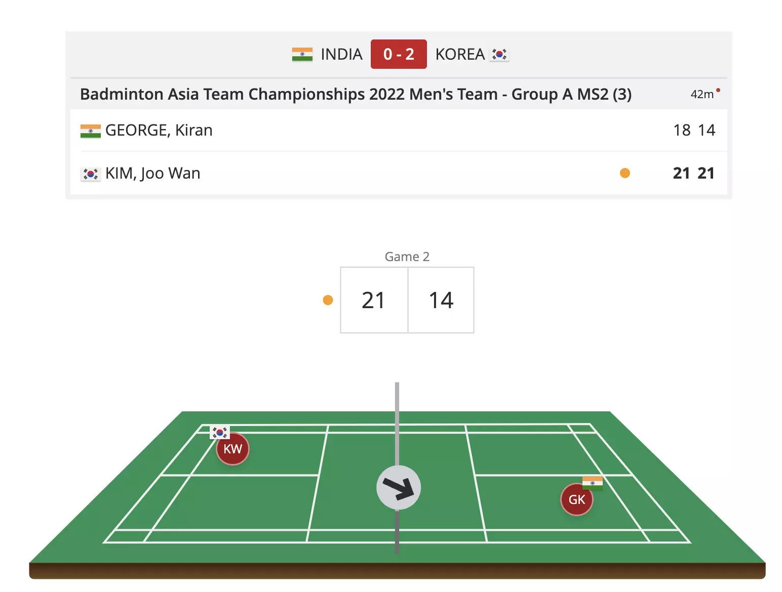 It's not a good day for Indian badminton stars at the BATC 2022 as they haven't been able to win a single game, let alone a match in this tie against Korea.