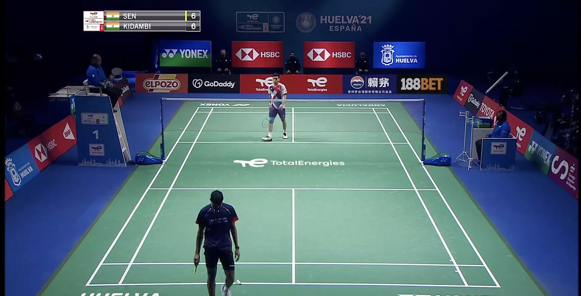 An immaculate deception by Lakshya Sen outruns Kidambi. The 20-year-old is giving a neck-to-neck fight at 6-6.