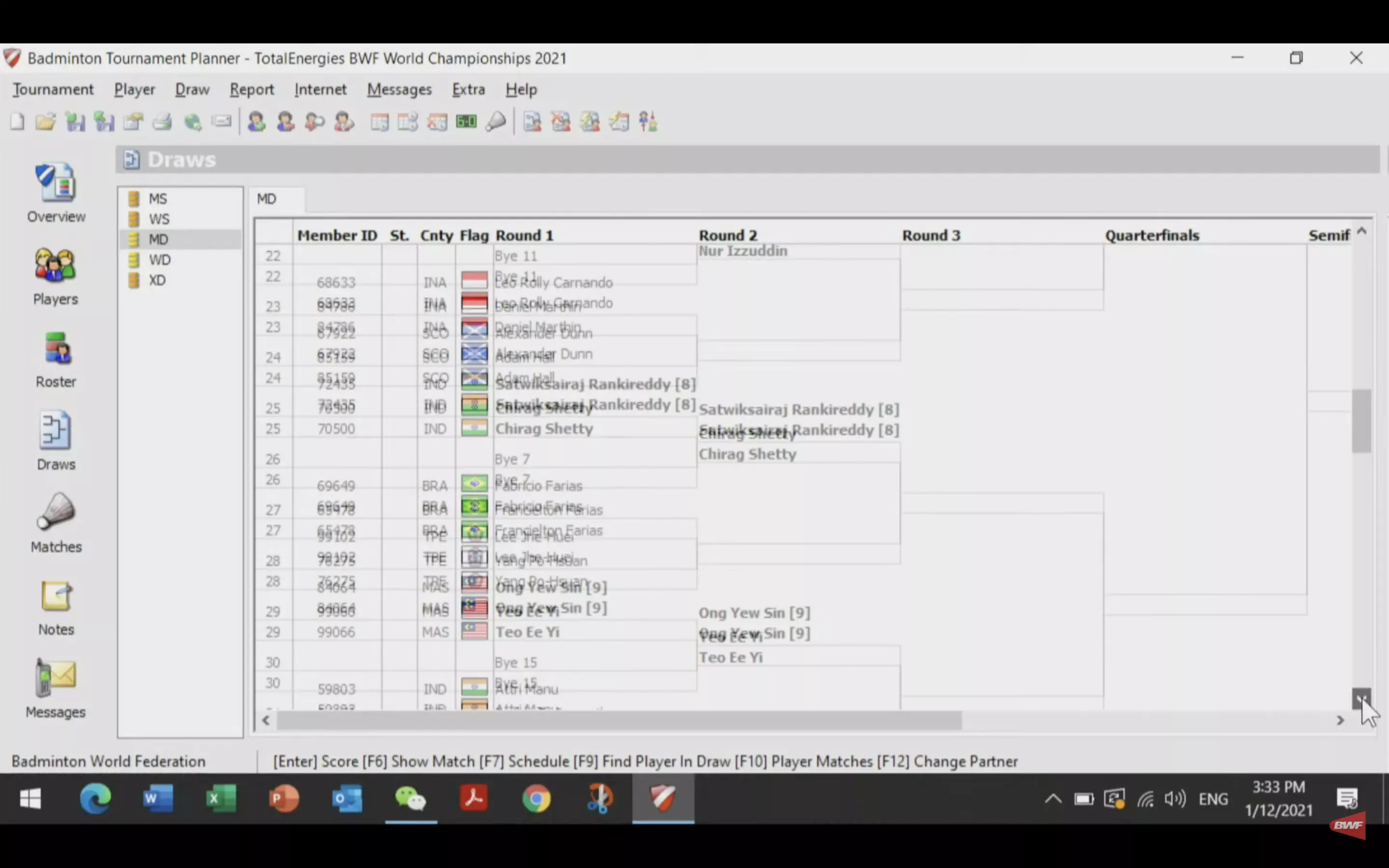 The dynamic men's doubles duo of Satwik-Chirag are seeded eighth and will have to battle past Lee/Yang in Round 2, Ong/Teo in pre-quarters, and eventually, lock horns against reigning Olympic champions Lee/Wang in the quarters.