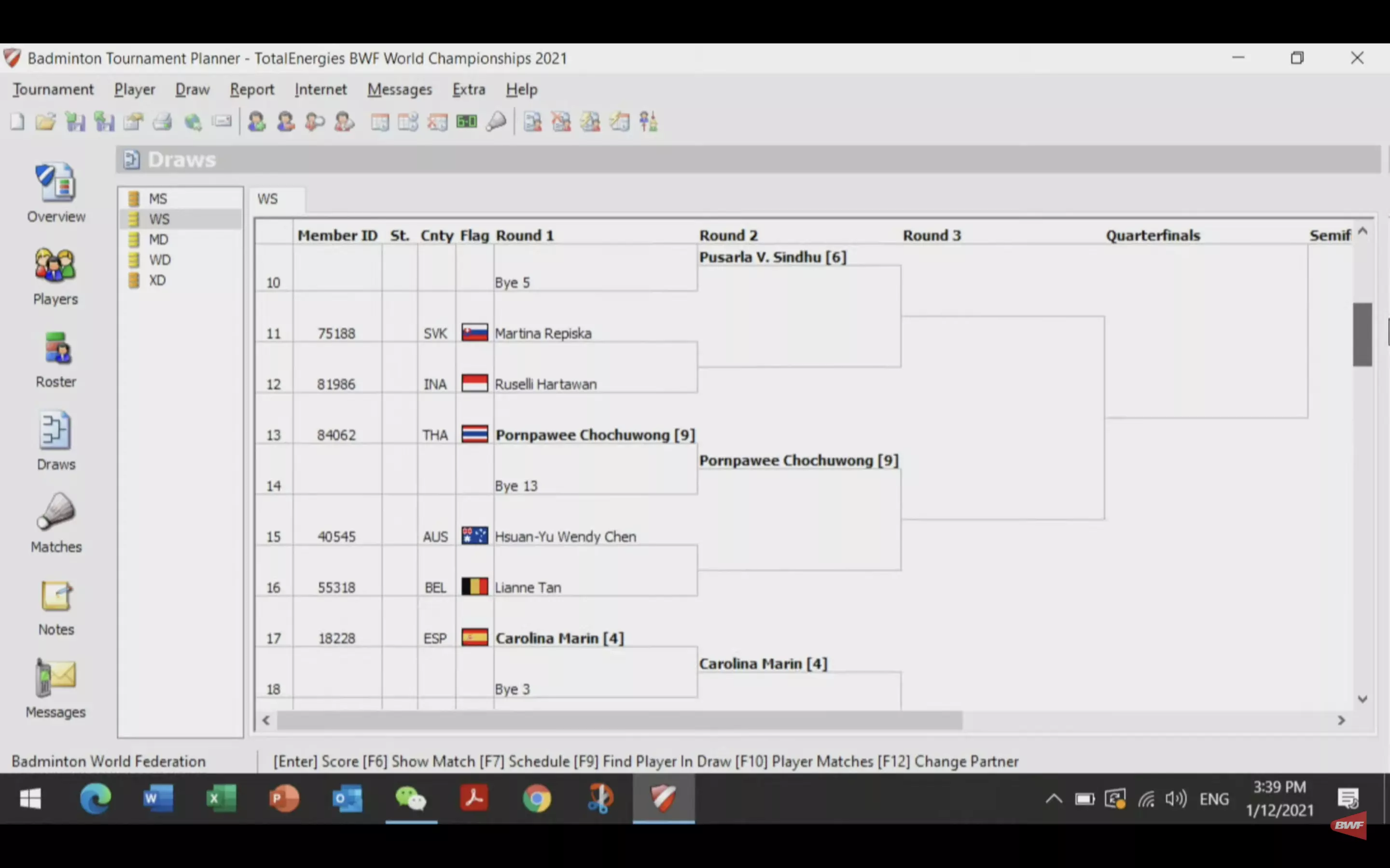 PV Sindhu, seeded sixth, is the defending champion, will face-off against Pornpawee Chochuwong in the pre-quarters, and an exciting meeting with Tai Tzu-ying awaits the 2-time Olympic medallist in the World Championships.