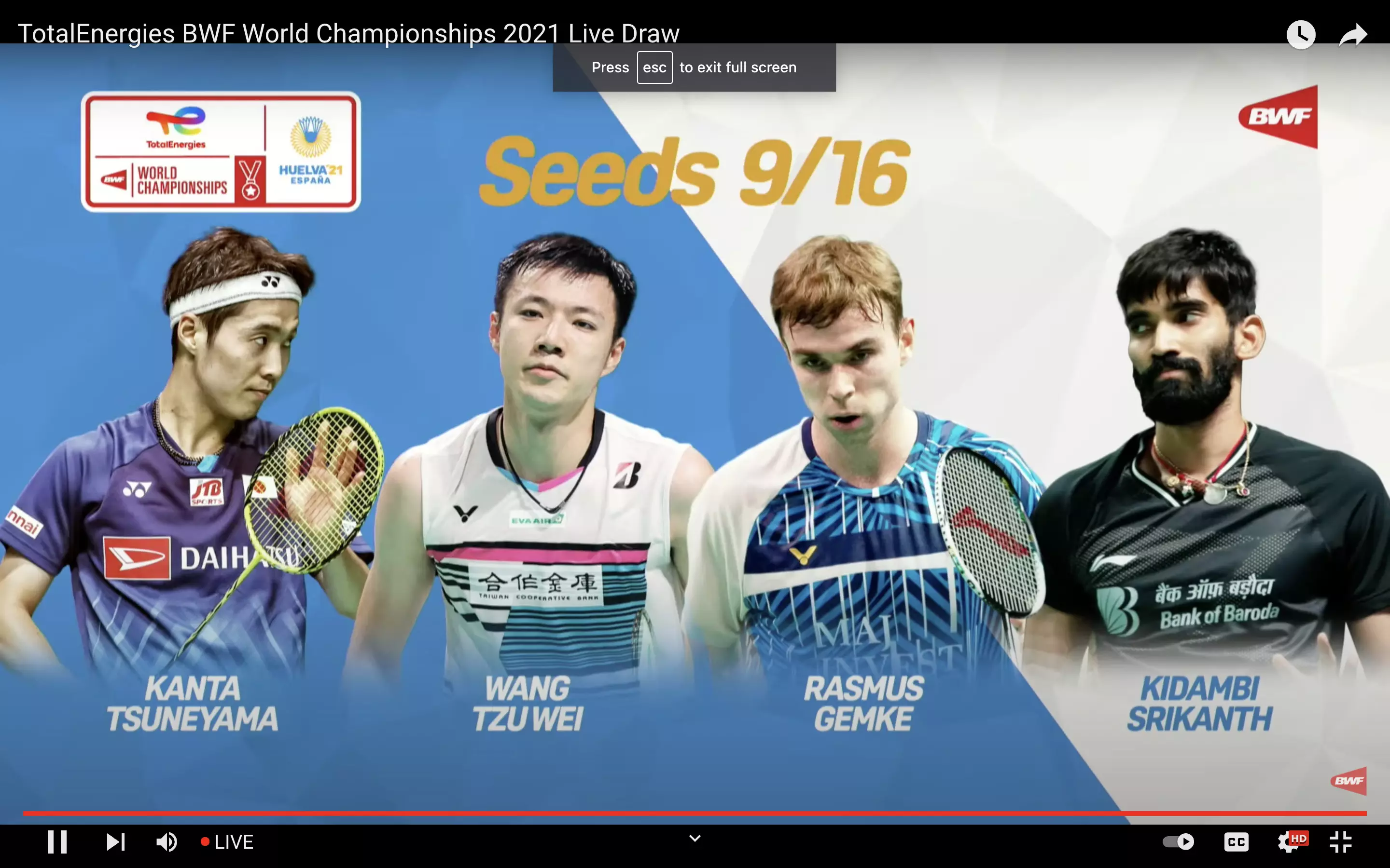 Welcome to the Day 1 live blog of The Bridge from the BWF HSBC Badminton World Tour Finals 2021!