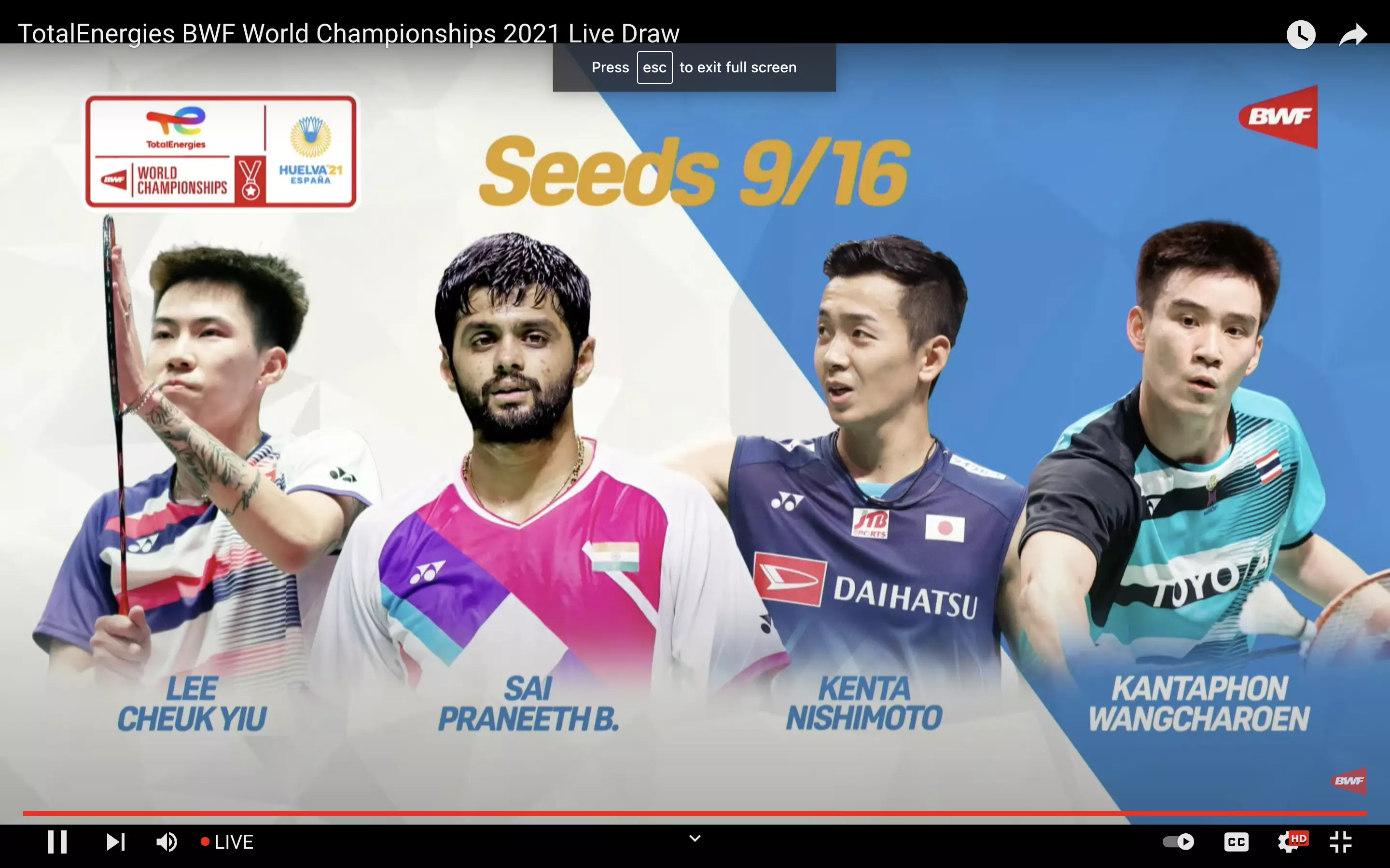 Meanwhile, Sai Praneeth is seeded 14th and has to cross the hurdle of meeting Mark Caljouw in the first round, followed by a moderately easy Round 2 and a potential pre-quarter-final clash against Indonesia's Anthony Ginting. Pretty exciting!