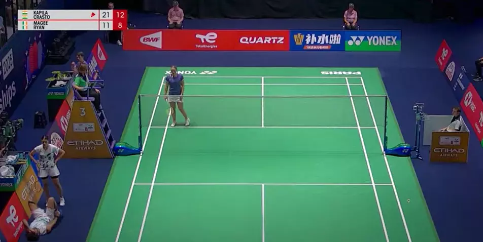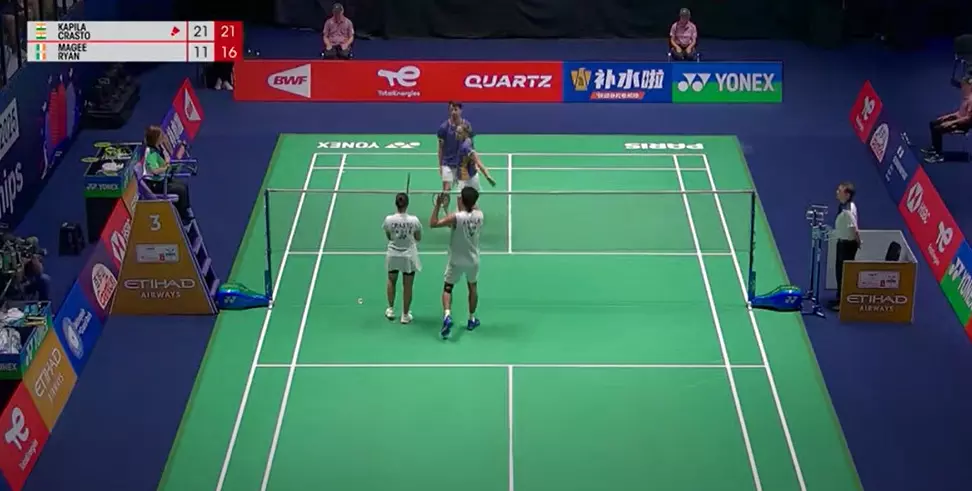 A Crasto down the line smash winner takes India to an 18-15 lead.