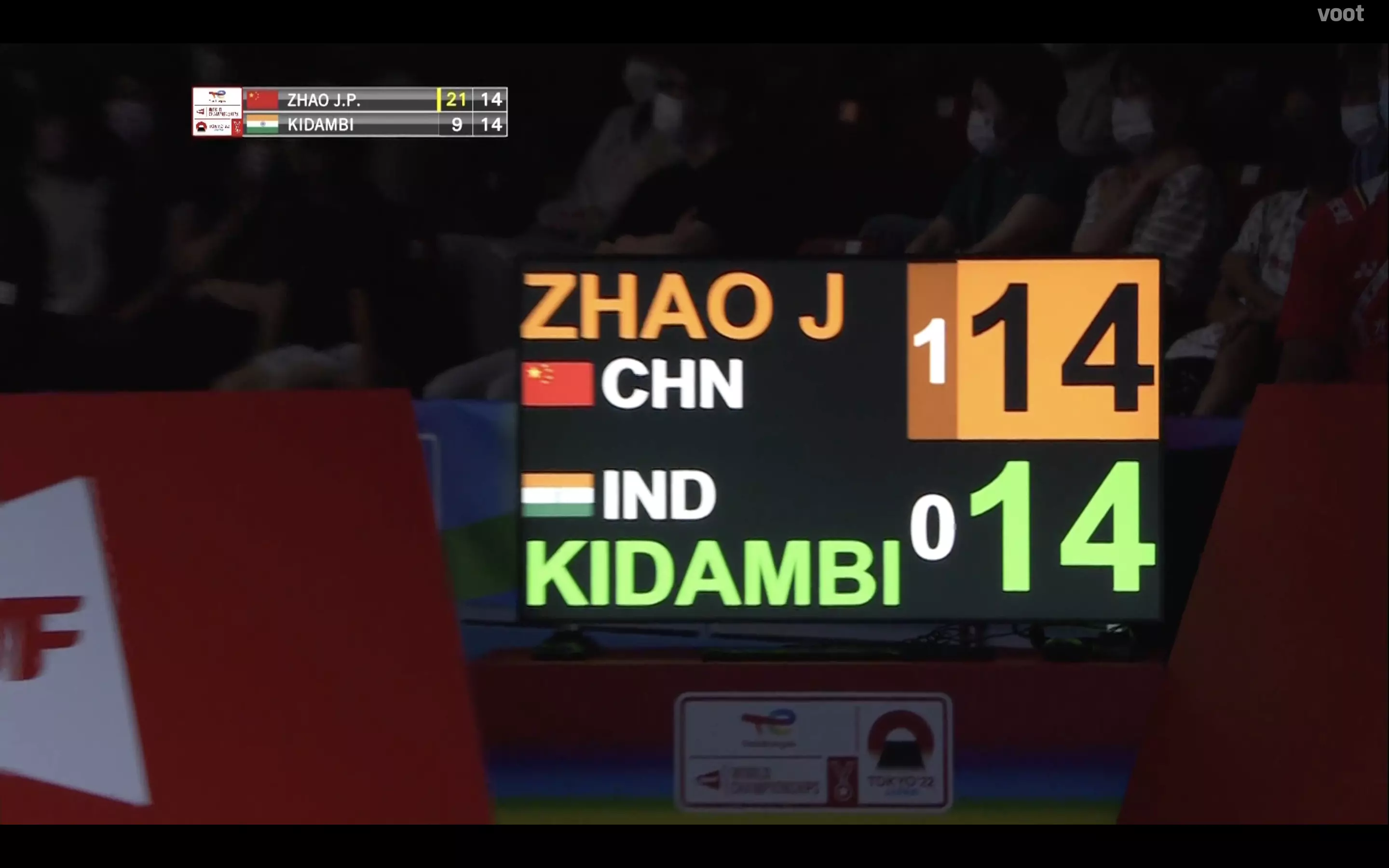 THIS IS NOT LOOKING GOOD FOR THE WCH SILVER MEDALLIST! He loses the opening game to the Chinese player, 21-9, in no time!