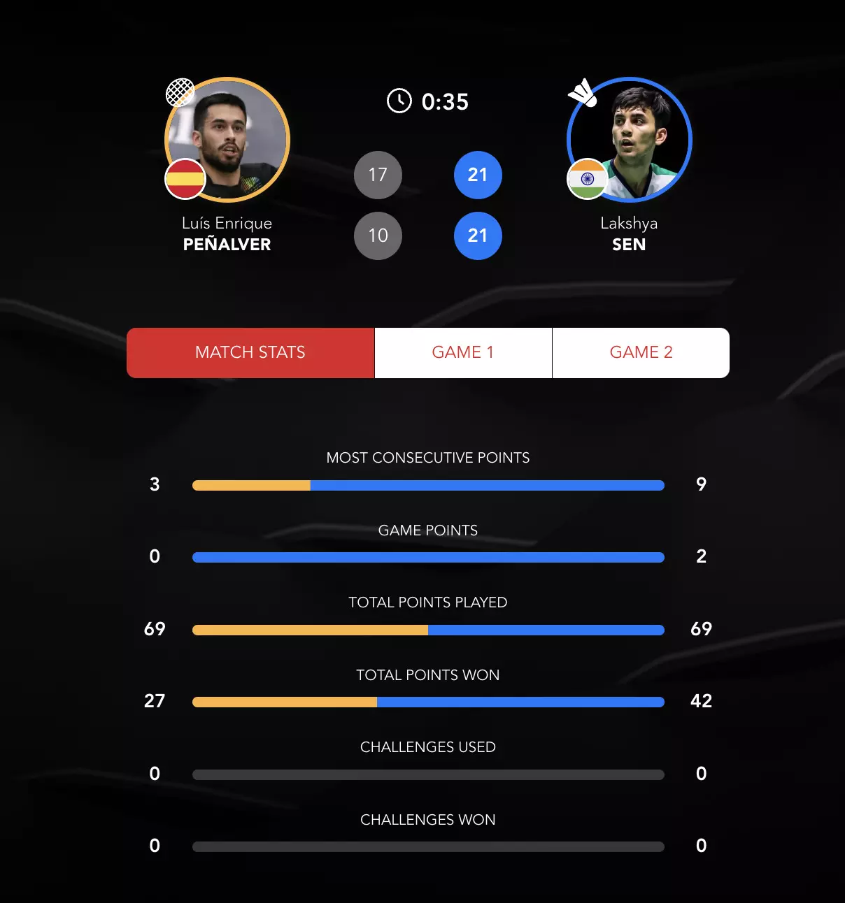 Lakshya Sen is moving well and the errors are coming easy from his opponent as he reaches match point now at 20-10