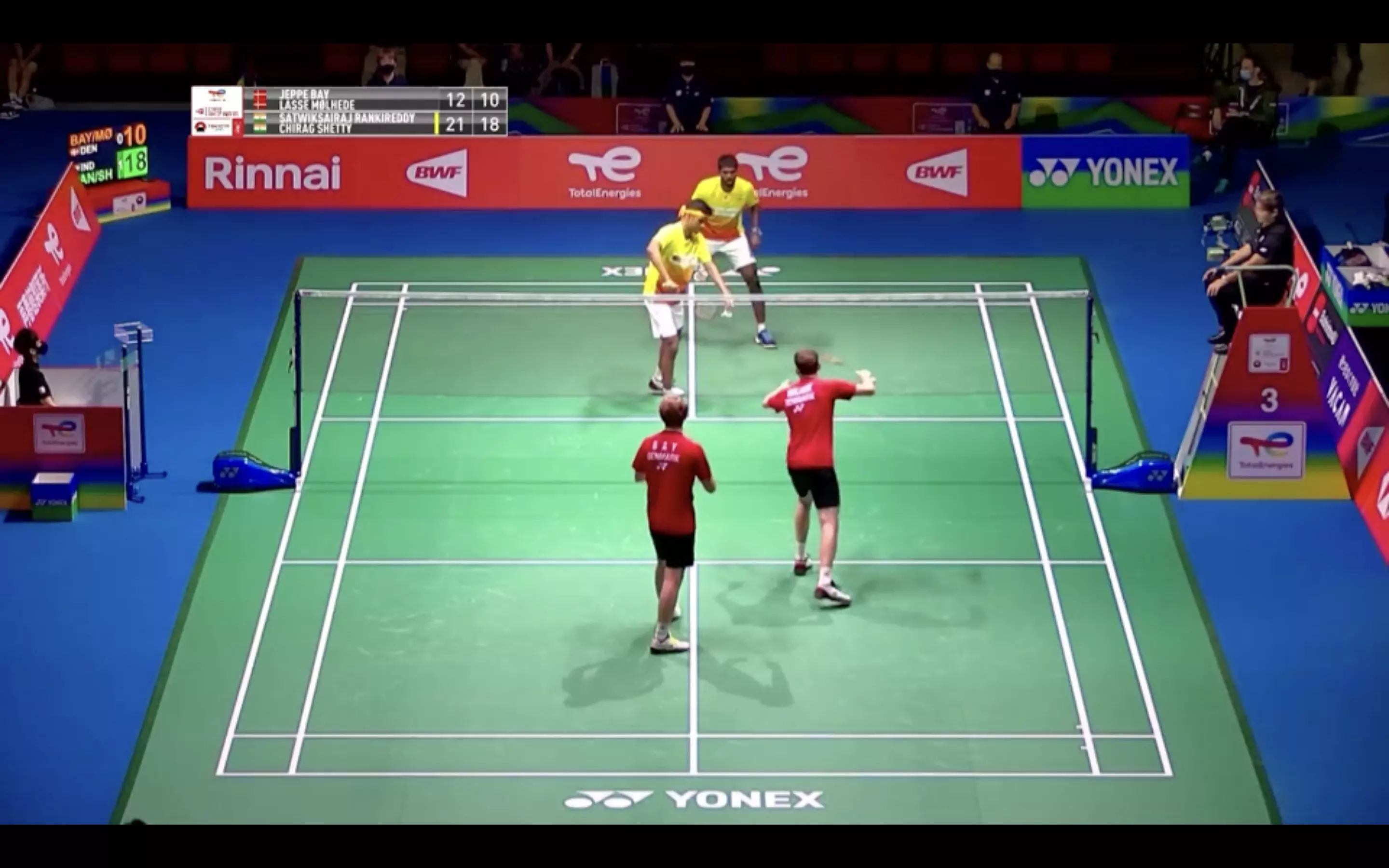 And we have another men's doubles pair goes through from India as Satwik/Chirag enter the quarters, 12-21, 10-21.