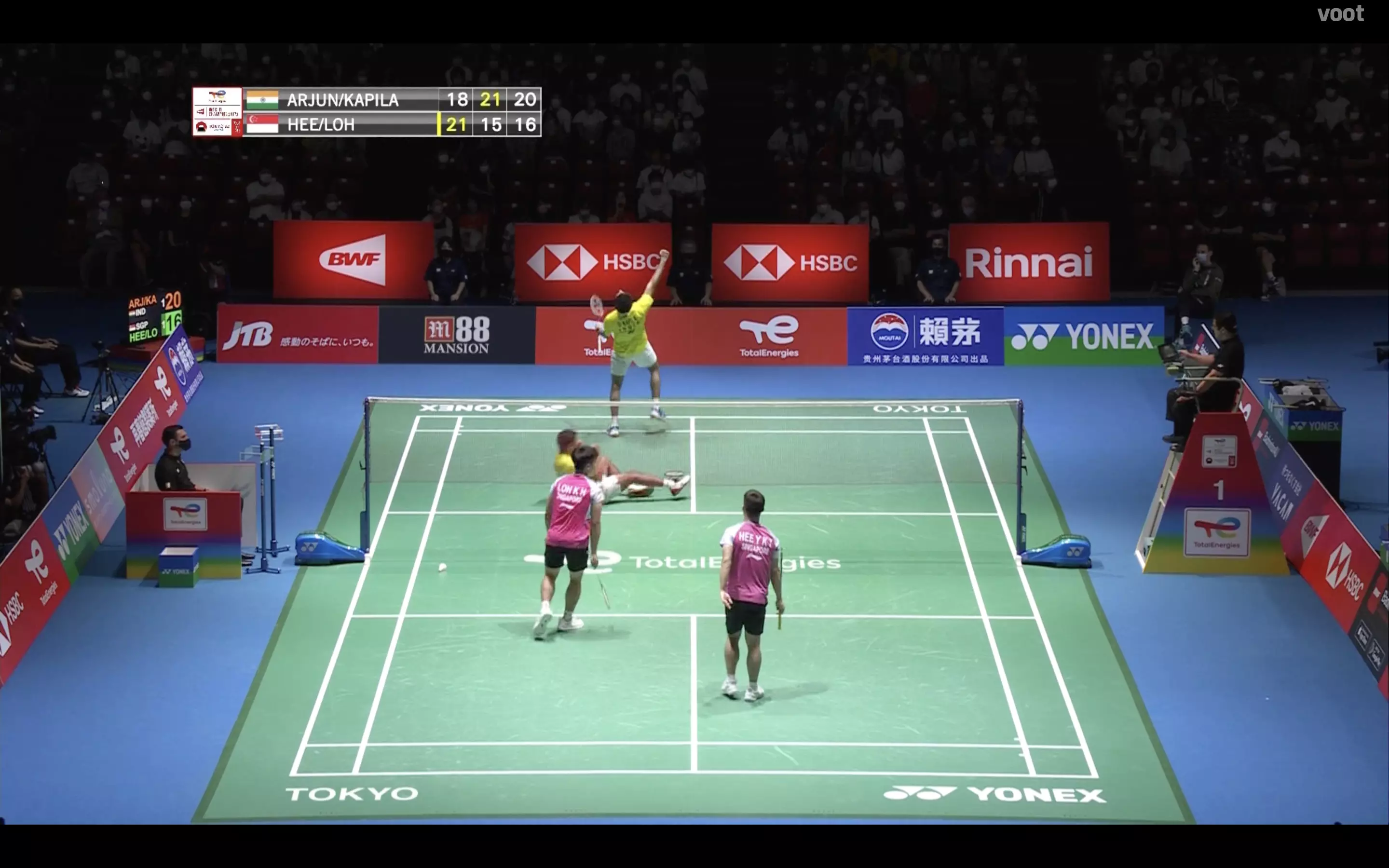 What a moment here! Dhruv and Arjun take down Singaporean duo of Hee/Loh 18-21, 21-15, 21-16 to enter the quarterfinals of the WCH for the first time in the career.