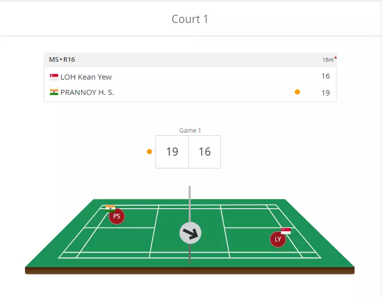 Prannoy and Loh are carefully chasing each point without giving much lead to other.