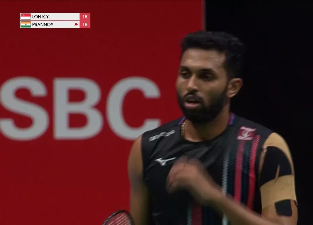 HS Prannoy takes the court against Loh Kean Yew of Singapore.