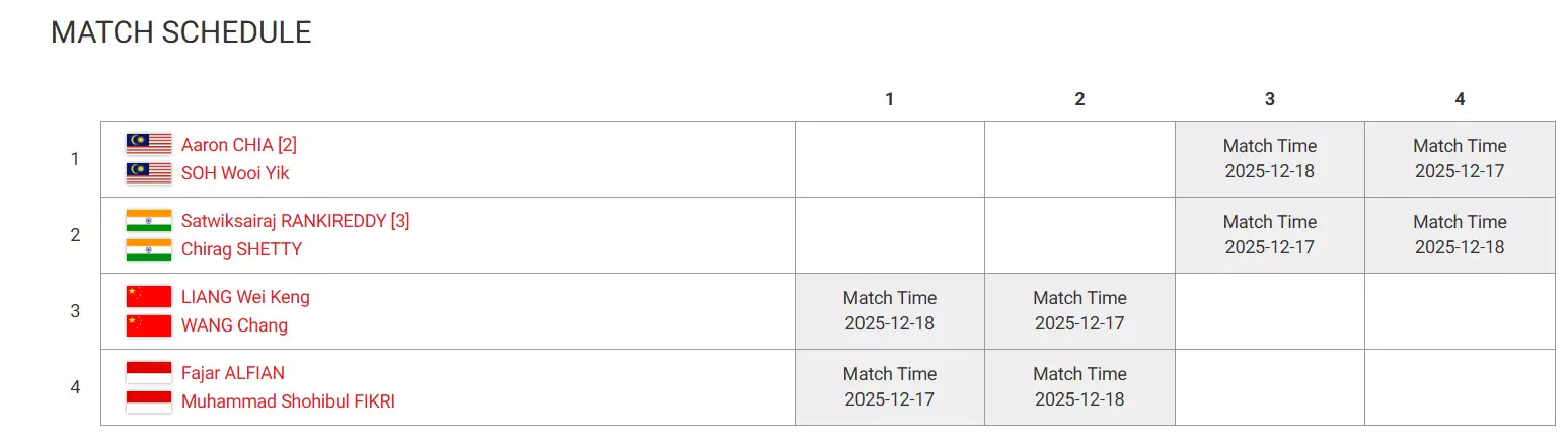 BWF World Tour Finals 2025 Live: Indian men's doubles pair of Satwiksairaj Rankireddy and Chirag Shetty to compete at the 2025 BWF World Tour Finals in Huangzhou, China, on Wednesday.
