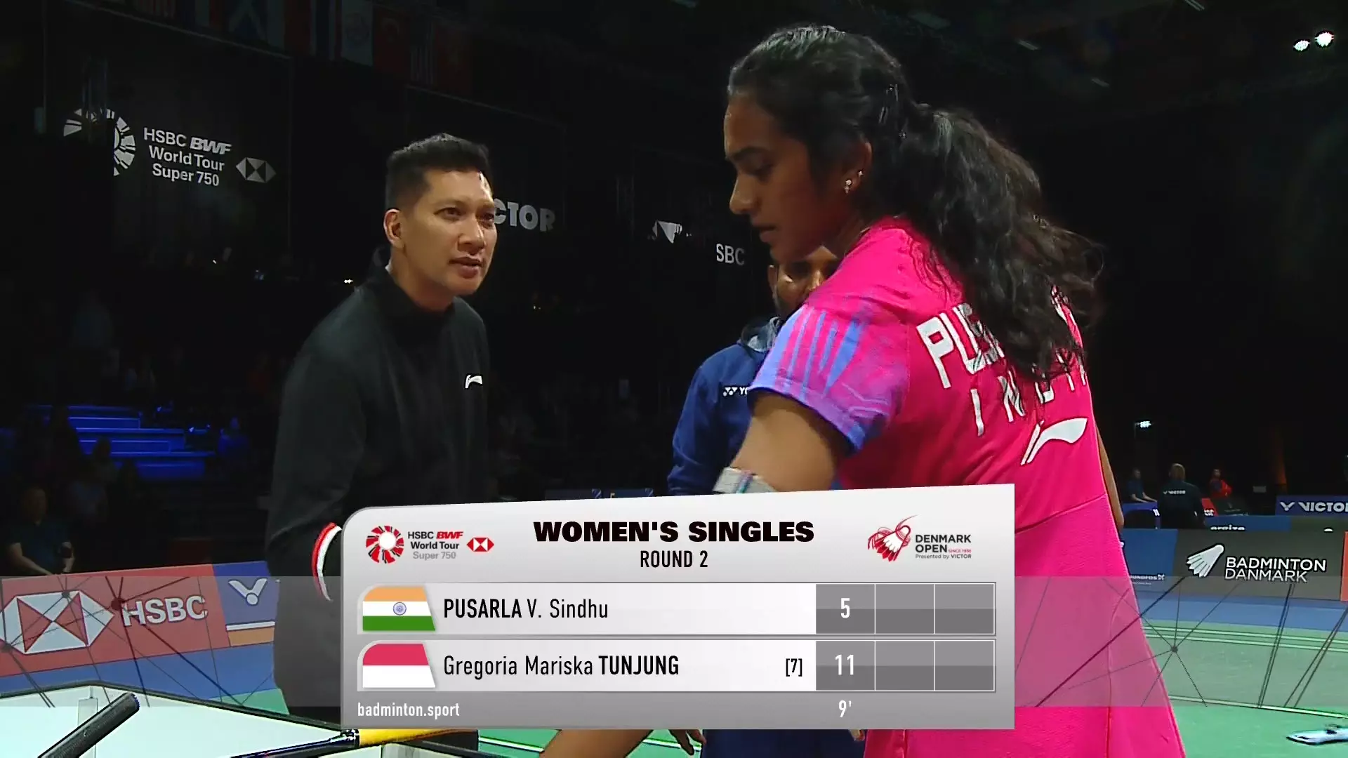 Five consecutive points for PV Sindhu.