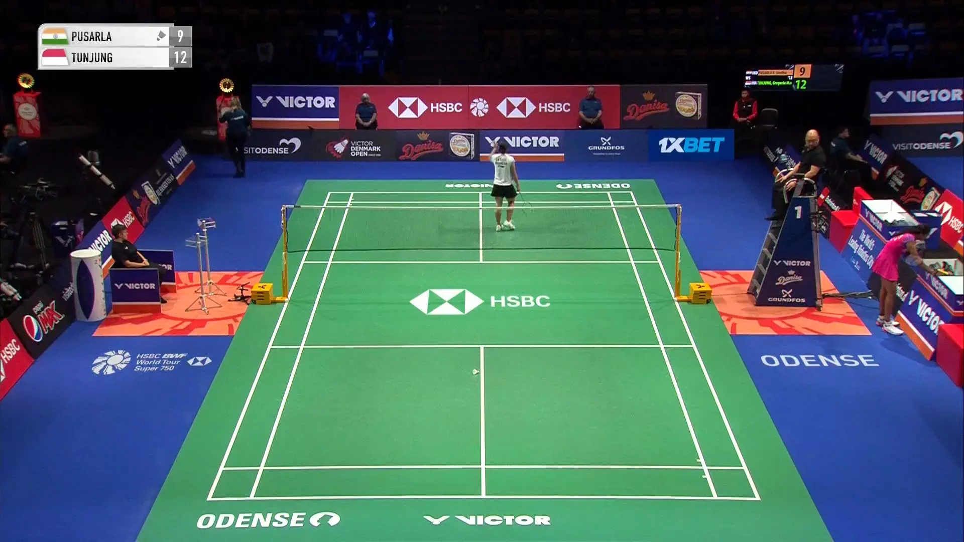 Sindhu races to a lead of 9-3 and the Indian shuttler looks super confident forcing Tunjung in multiple errors.
