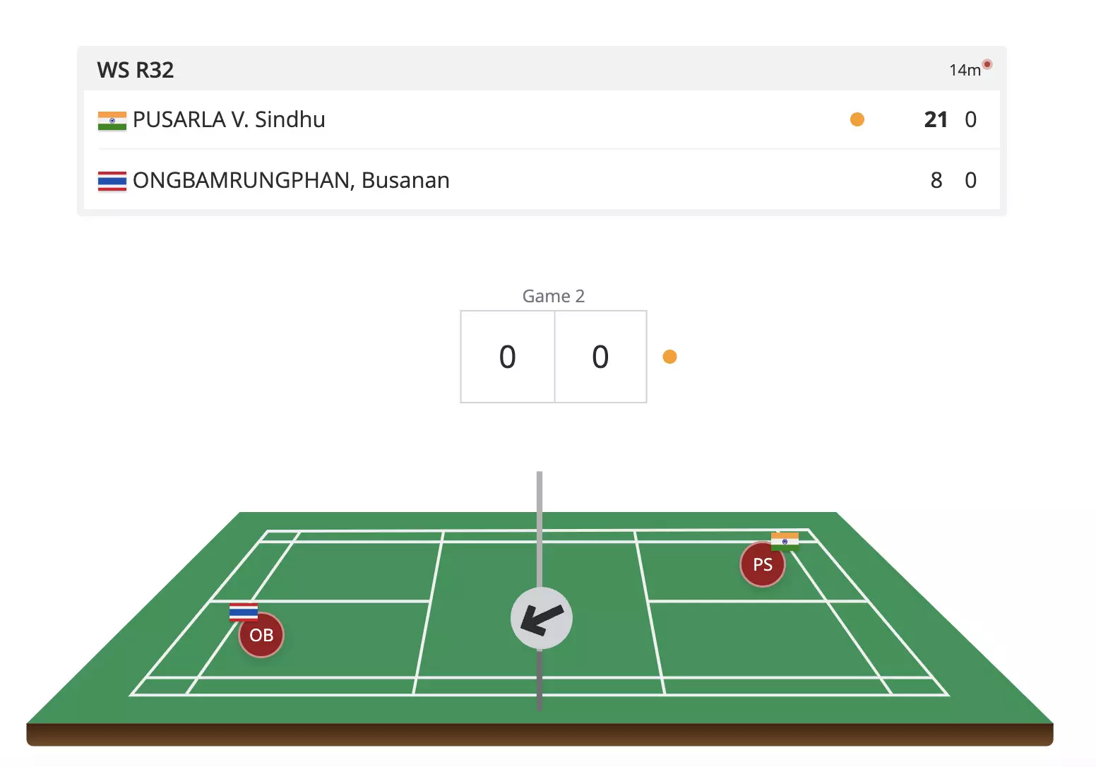 PV Sindhu doesn't waste too much time and wraps up the opening game rather convincingly, winning 21-8.