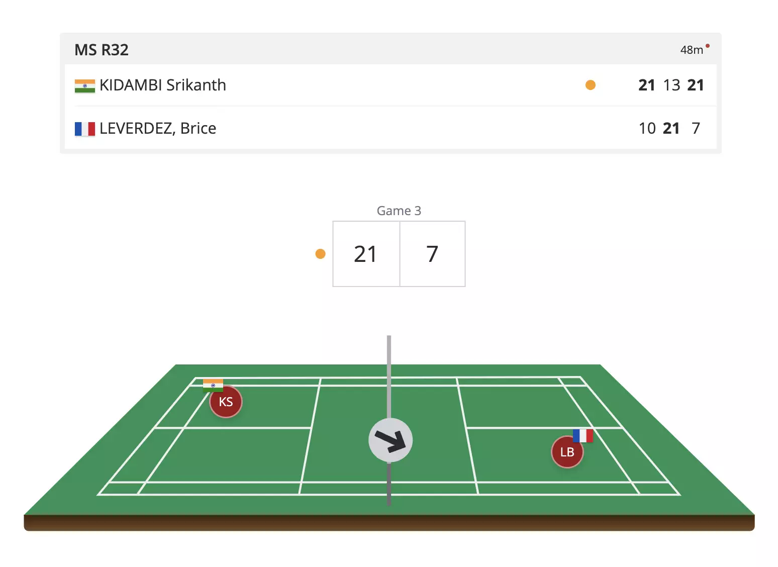 Leverdez is simply capitalising on Kidambi's net errors now...