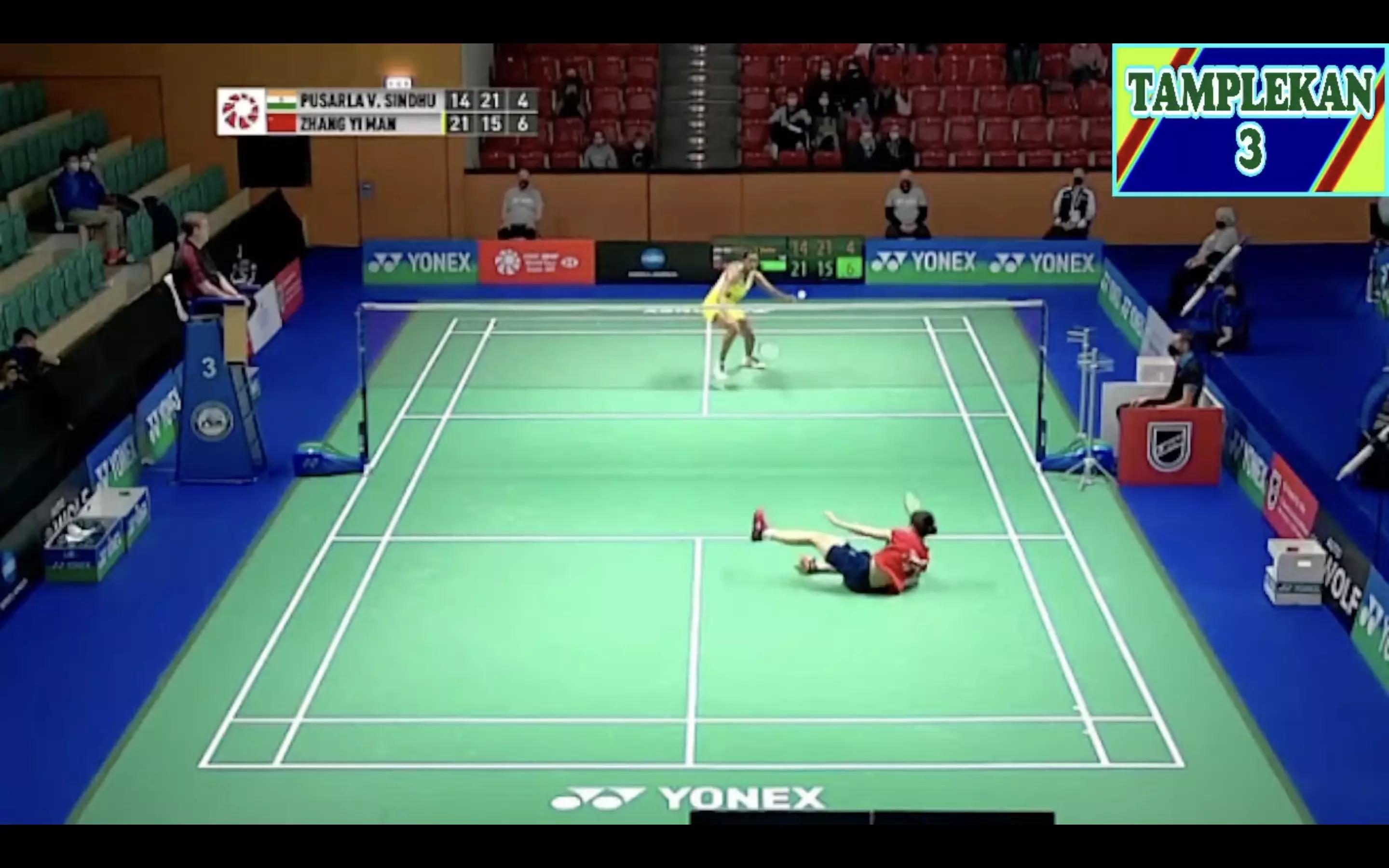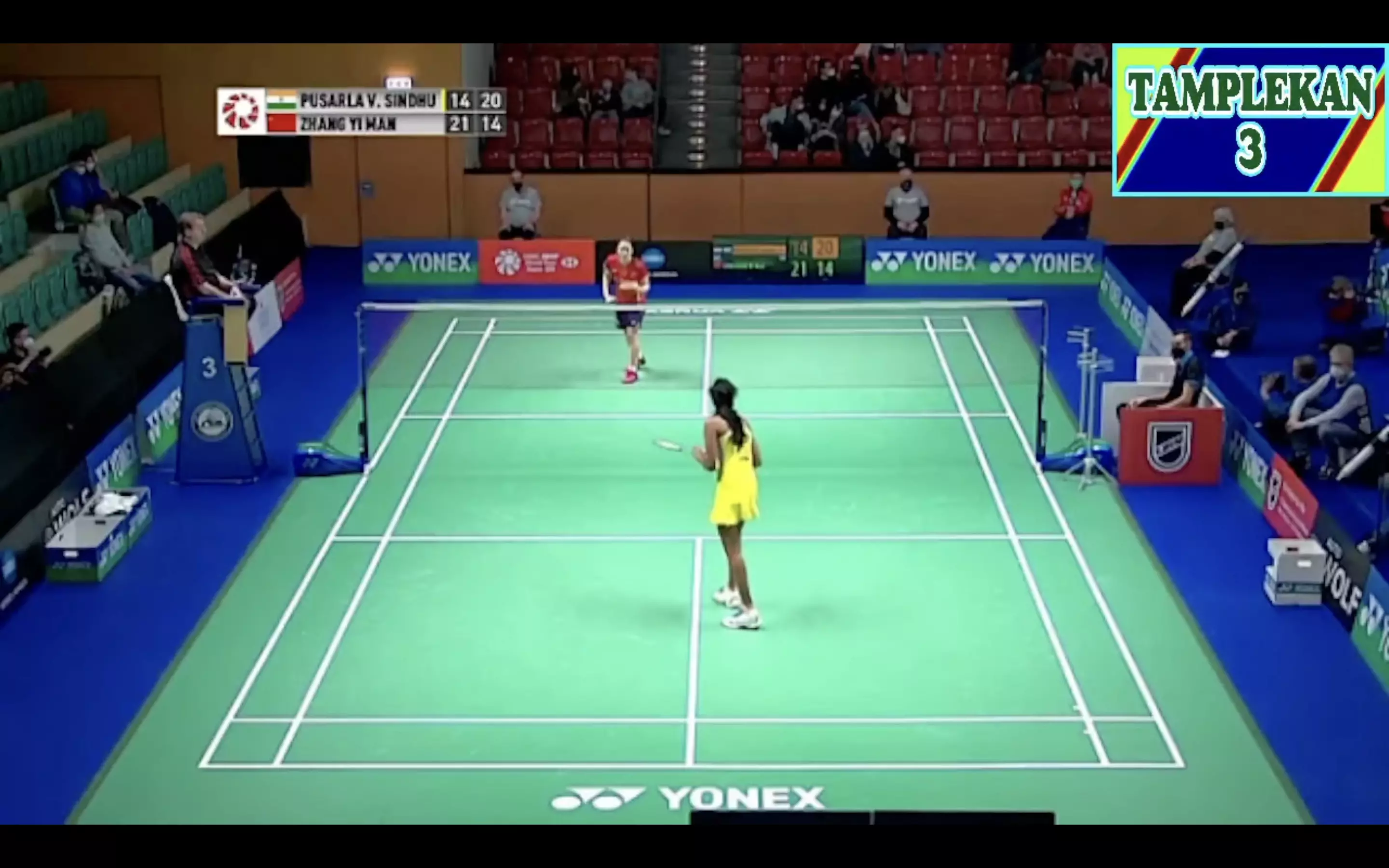 PV Sindhu is making use of her wingspan and covering the court well and Zhang Yi Man is scrambling to hit the returns, the rallies have spiced up now!