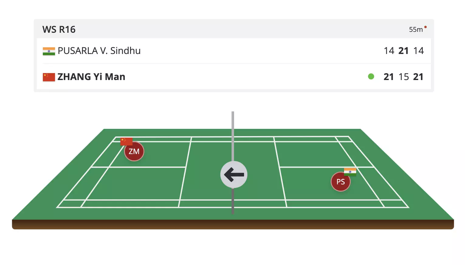 China's Zhang simply does a better job today against PV Sindhu who wasn't at her usual best today. This is a harsh loss for the Indian and quite unexpected too.