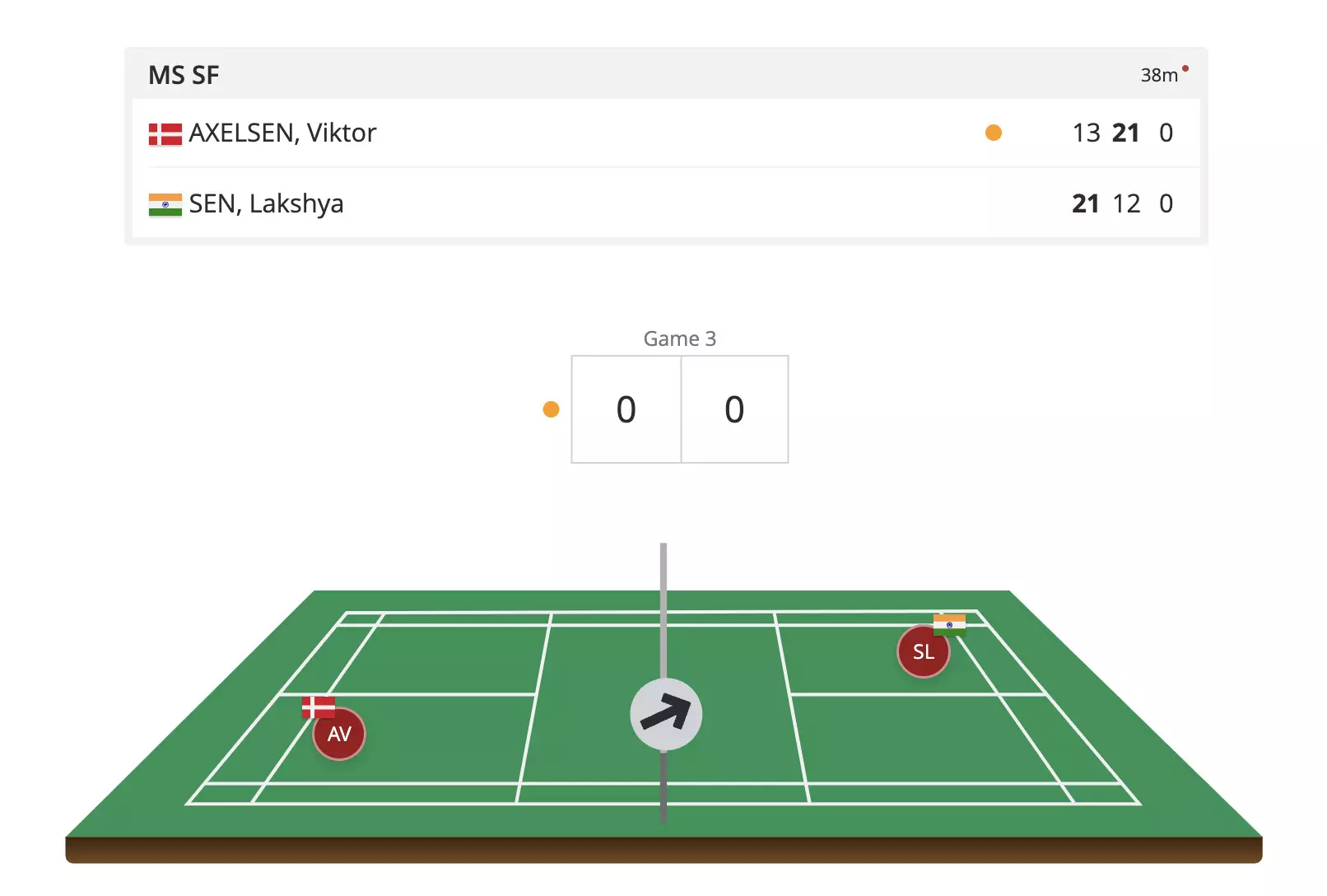Lakshya Sen made a confident start to the match and pocketed the first game in just 19 minutes, winning it 21-13. Soon, World No. 1 and reigning Olympic champion Viktor Axelsen notched things up in the second set and stole the lead to win the second set, 21-12.