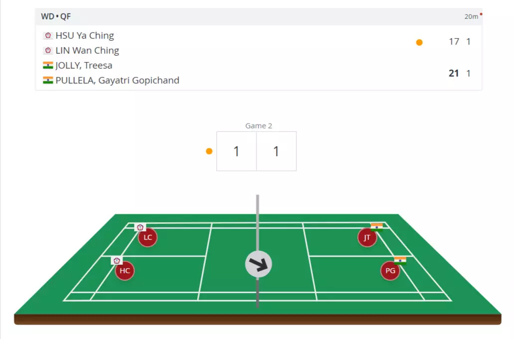 On a brighter note, women's doubles pair Treesa Jolly and Gayatri Gopichand and men's singles player Kidambi Srikanth won their respective matches to advance to the semi finals. While the duo defeated Tawain's Hsu Ya Ching/Lin Wan Ching (21-17, 18-21, 21-8), Srikanth got the better of Indonesia's Jonatan Christie in straight sets (21-13, 21-19).