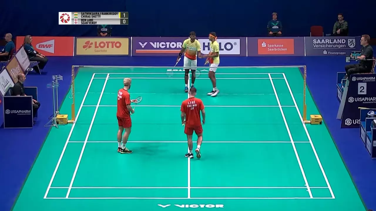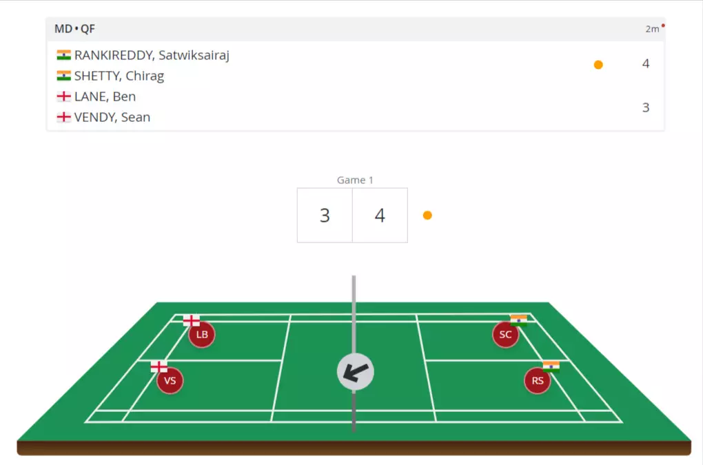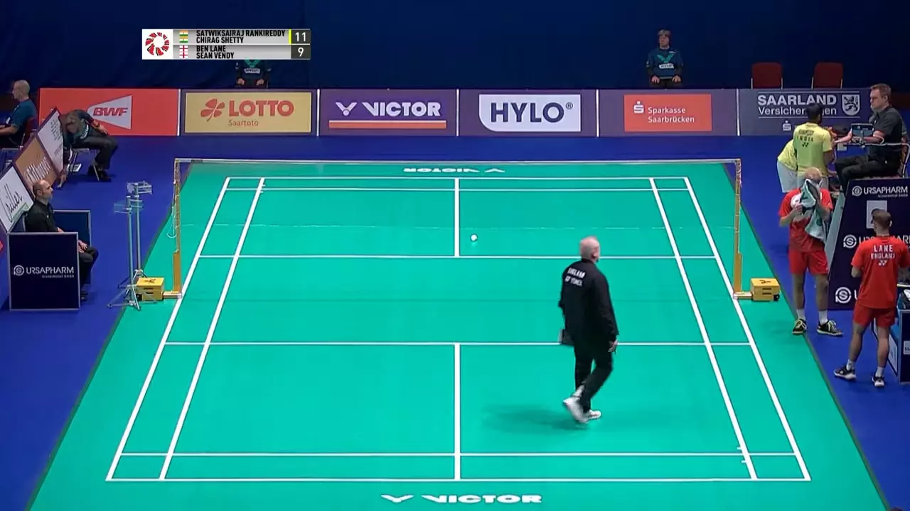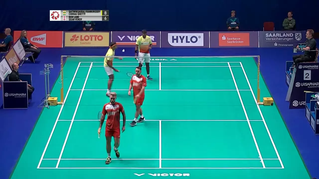 Both pairs are making each other work hard for the points as Satwik/Chirag force the English pair into a net error.