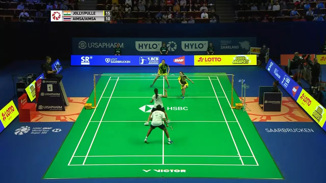 Treesa Jolly has been fantastic with her placements today and the thai pair has no answer to it.