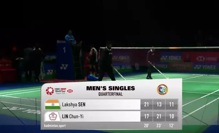 A smash from Lakshya lands long before he comes up with a sensational cross-court drop shot. Lin Chun Yi is surprised by how good that was from Sen.
