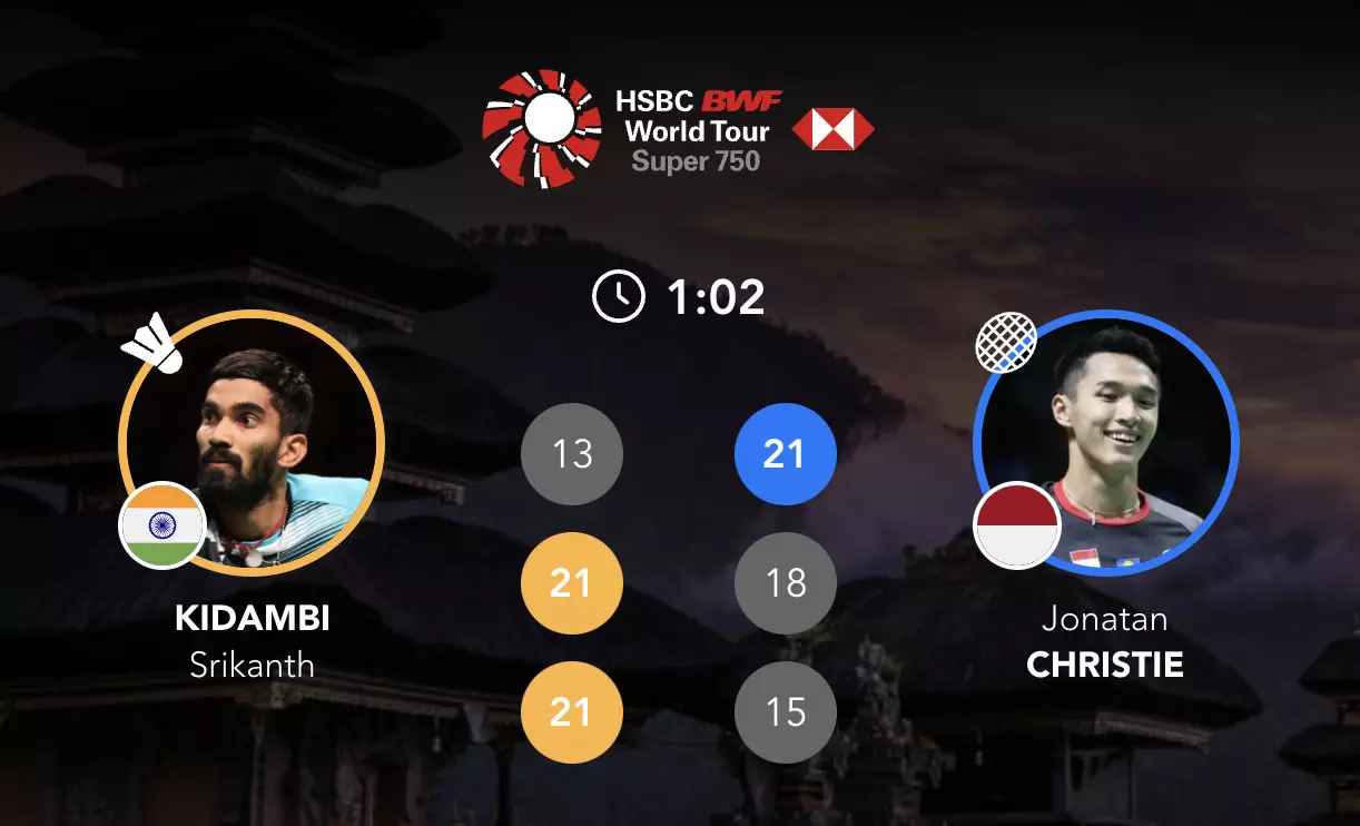 Kidambi Srikanth ousts the last remaining Indonesian player from the Men's Singles in the home tournament as he wins against Jonatan Christie - 13-21, 21-18, 21-15! What a performance from this Indian ace!