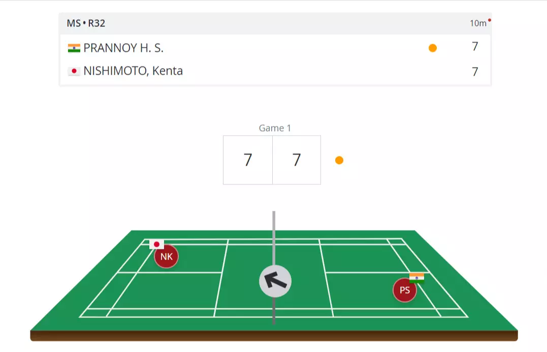 - HS Prannoy v/s Kenta Nishimoto- 10:30 am