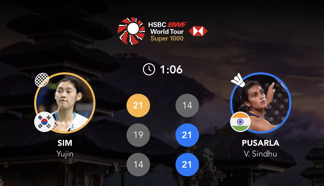 Phew, what a scare that was! PV Sindhu makes adjustments and comes back strong to win this gruelling match against Sim Yujin, 21-14, 19-21, 14-21 in 1 hour and 6 minutes!