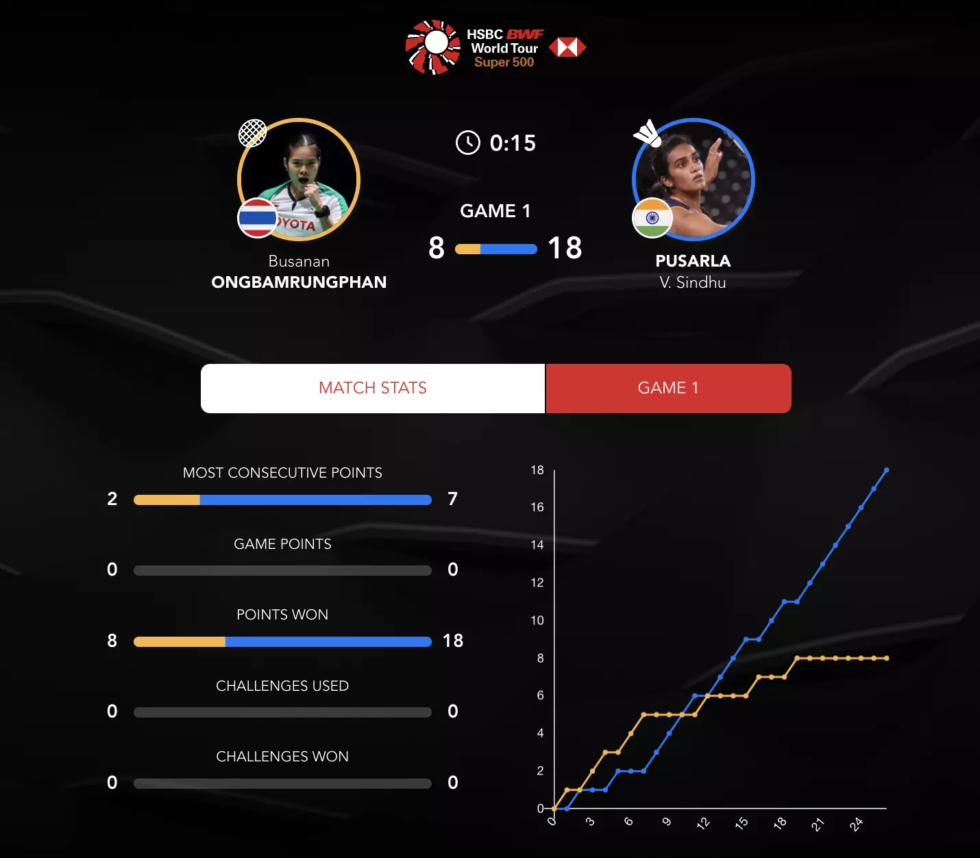 Signs of struggle from Busanan as Sindhu continues with her dominance here!