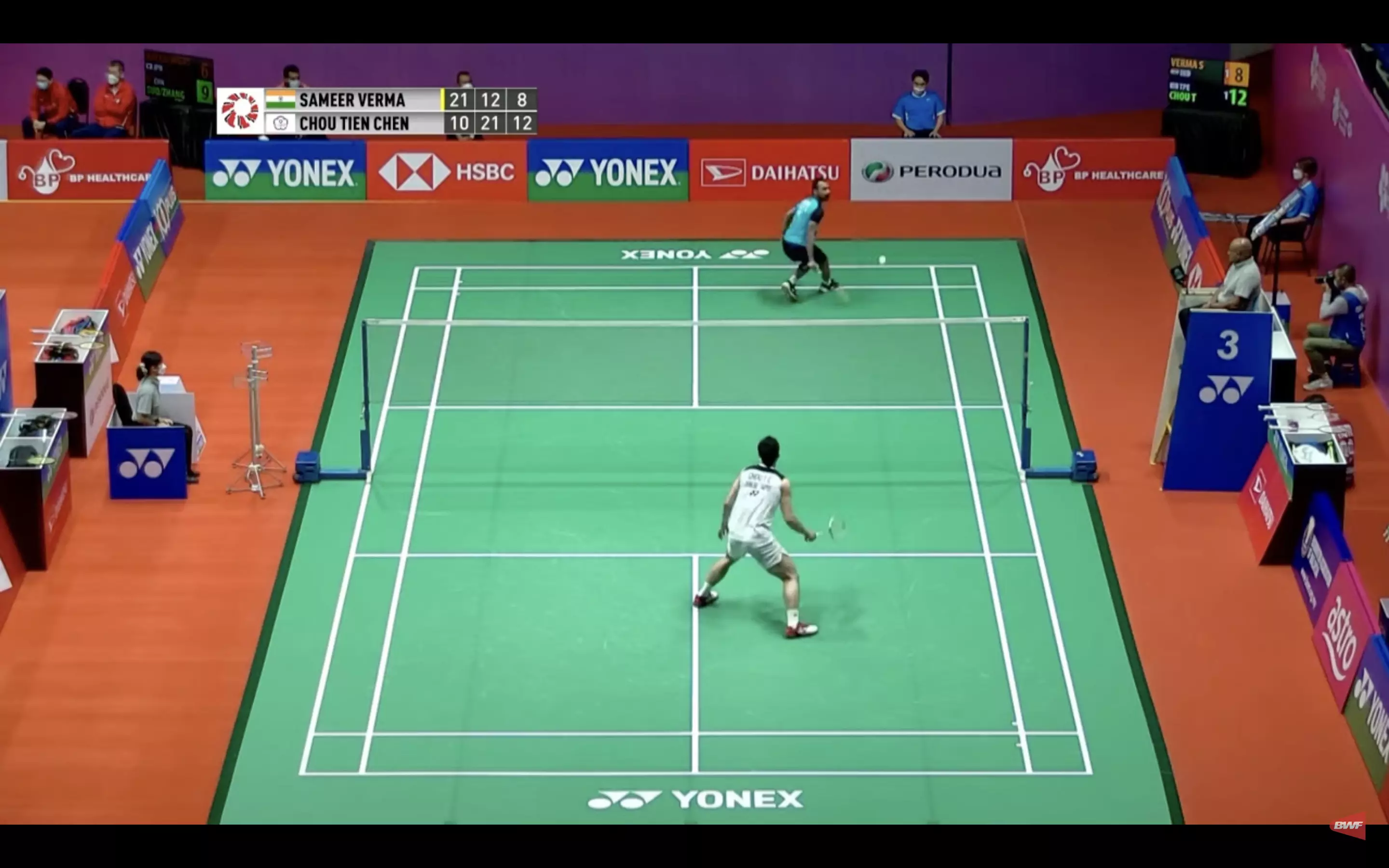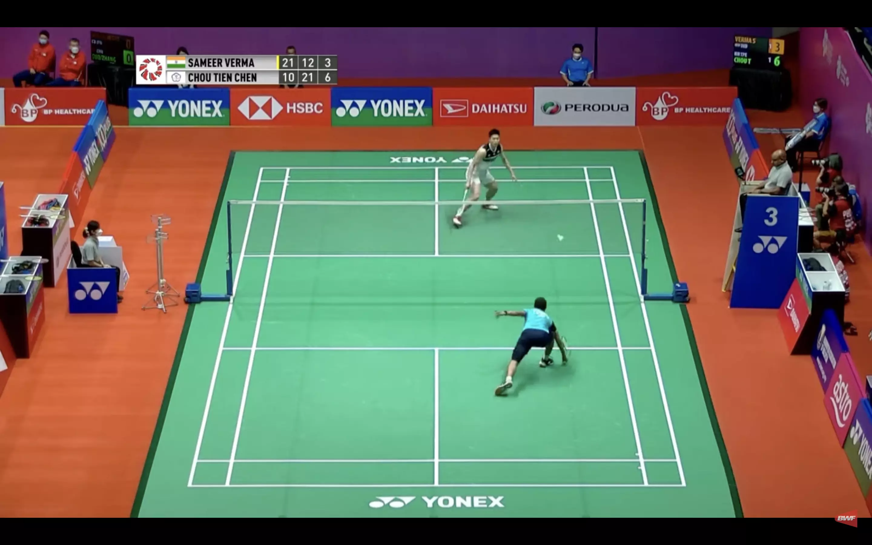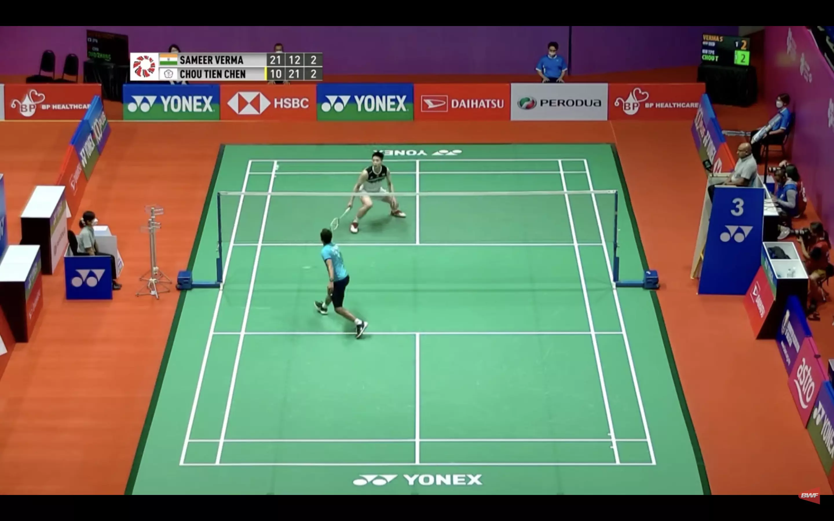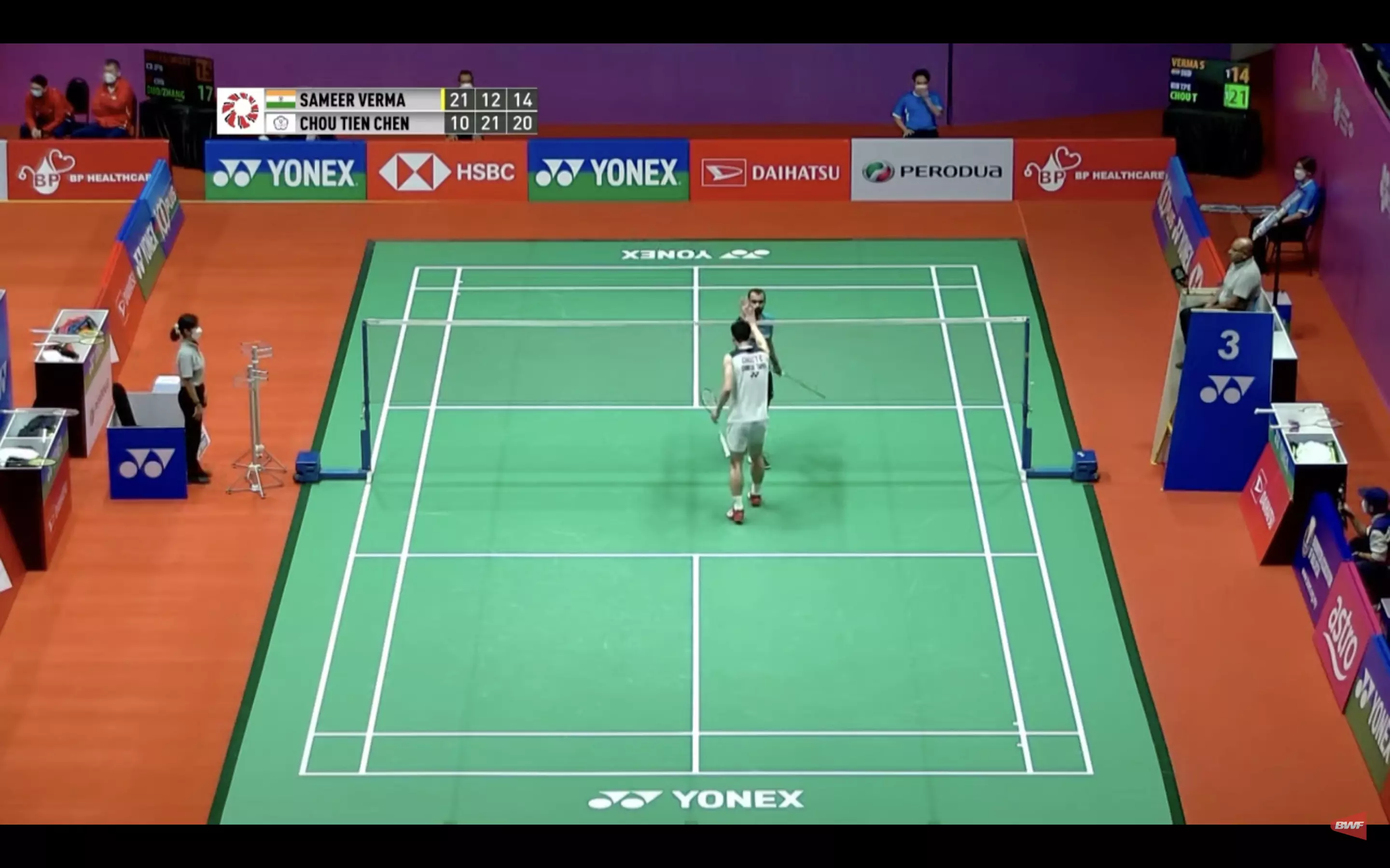 Quite a bit of quality badminton happening early in this decider as both players tighten up at the net play. It's 3-2 with Chou leading