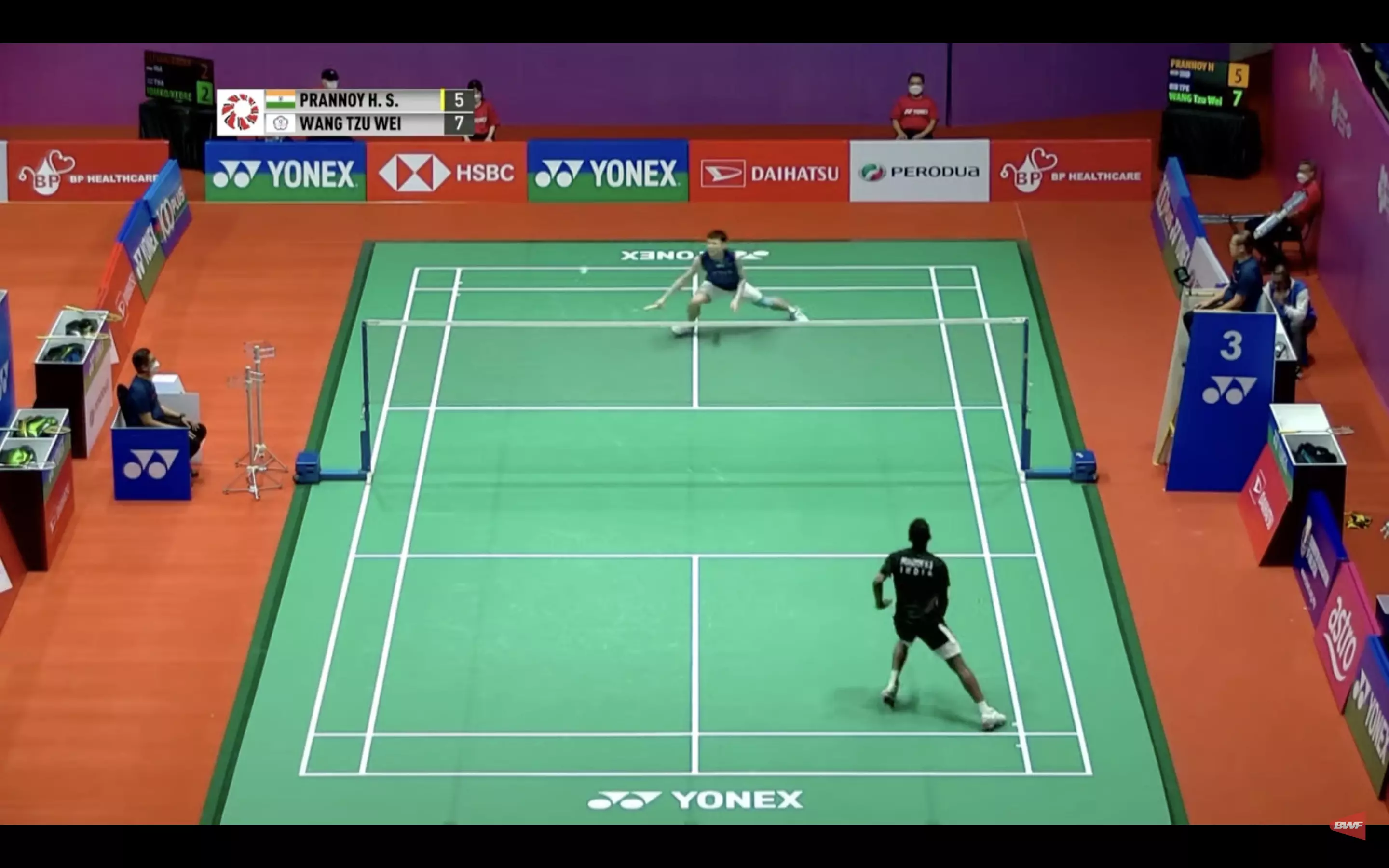 Both Prannoy and Wang are covering all corners of the court here and Prannoy is covering up to reduce the point gap!