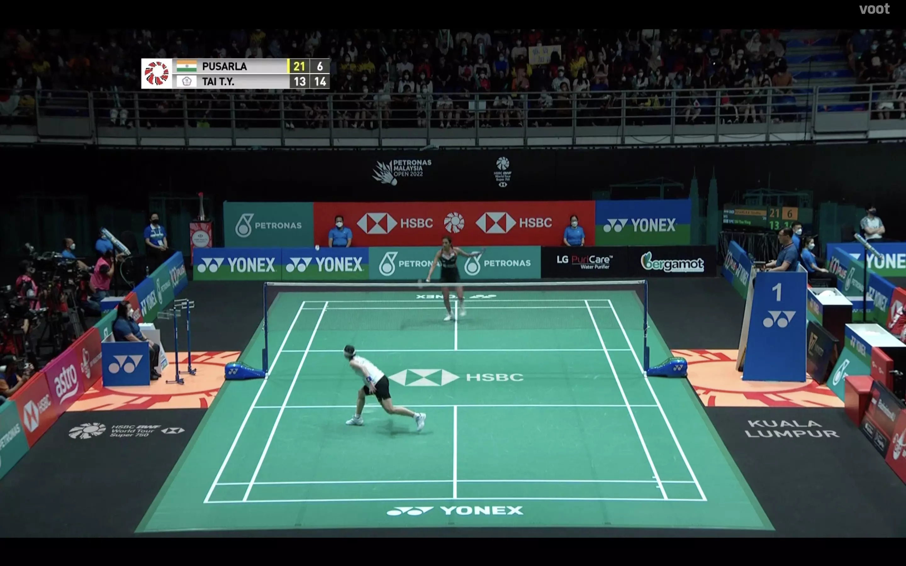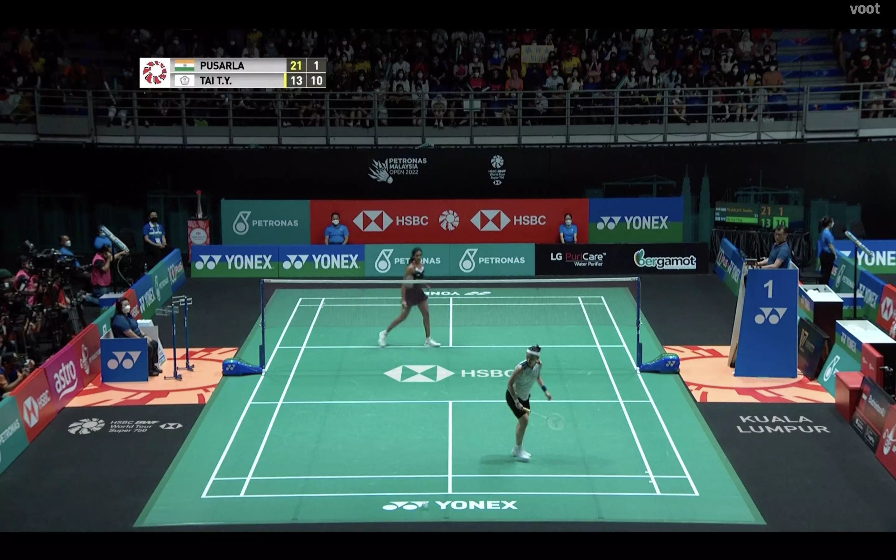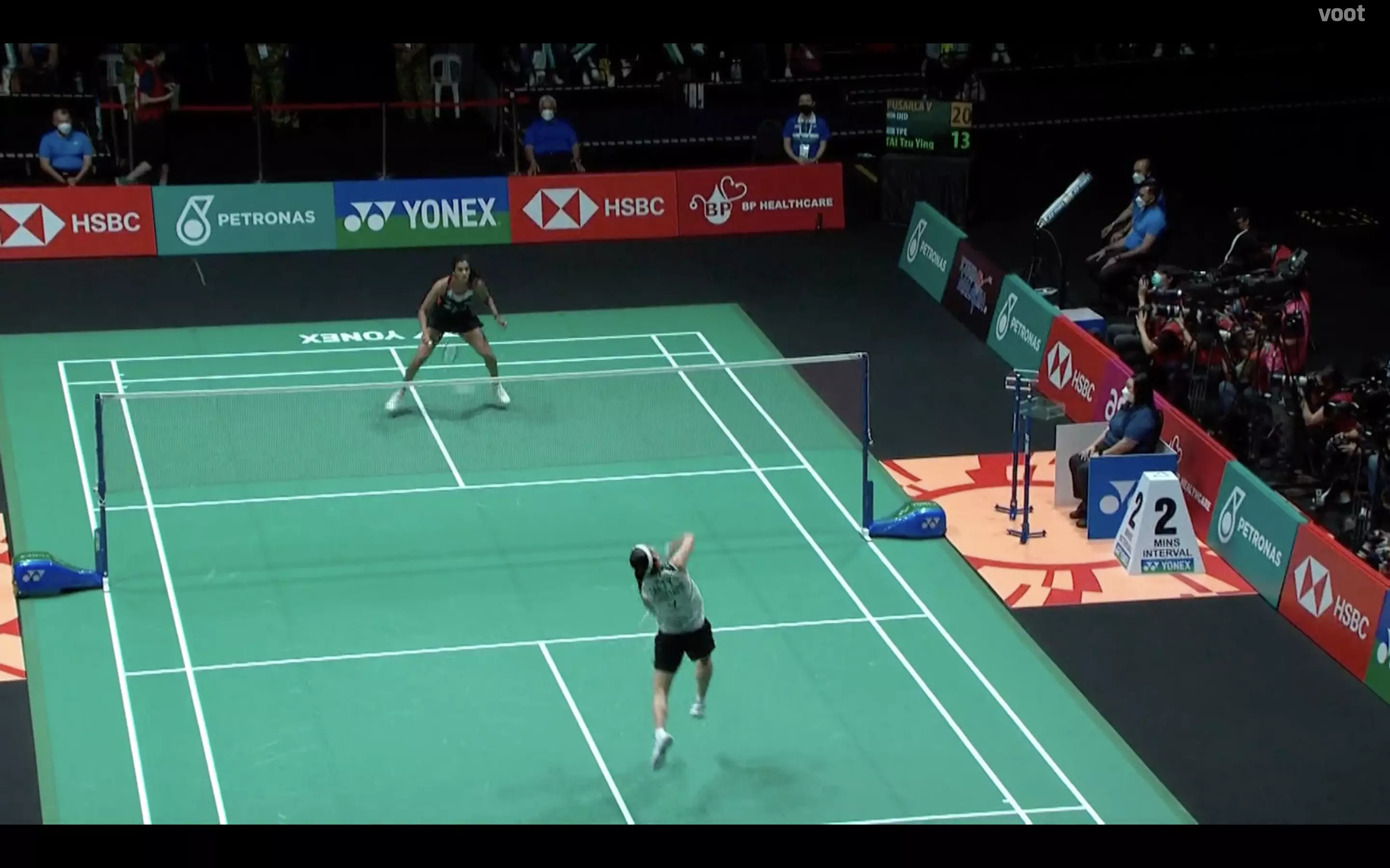 TTY takes an early lead at 5-1 in the second game as Sindhu, despite playing with the drift, is not being able to land her returns well