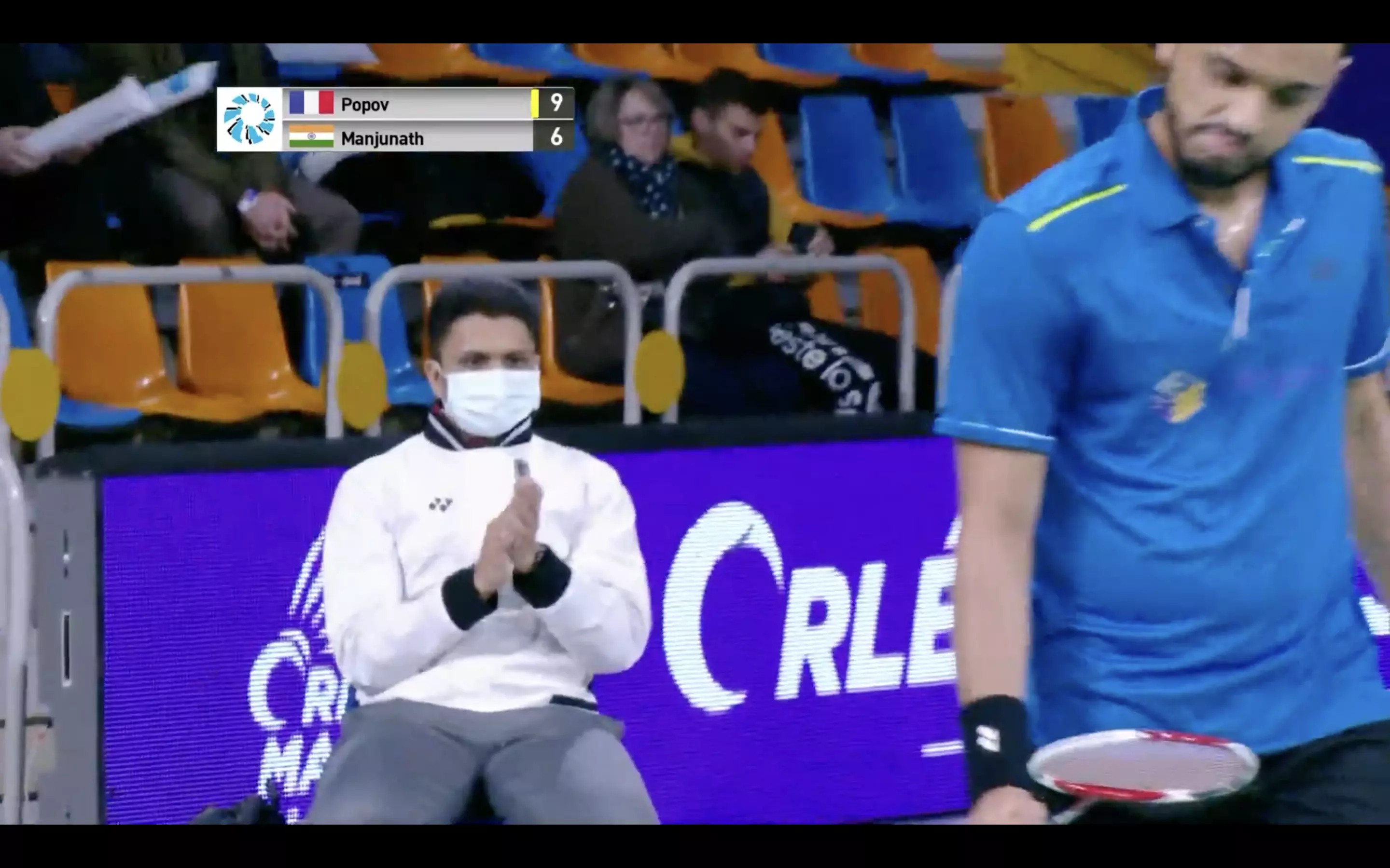 Mithun Manjunath has a few unlucky shots and Popov takes full advantage of that and attacks with body smashes to lead 18-11