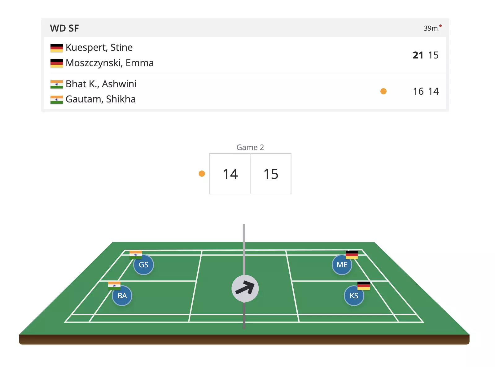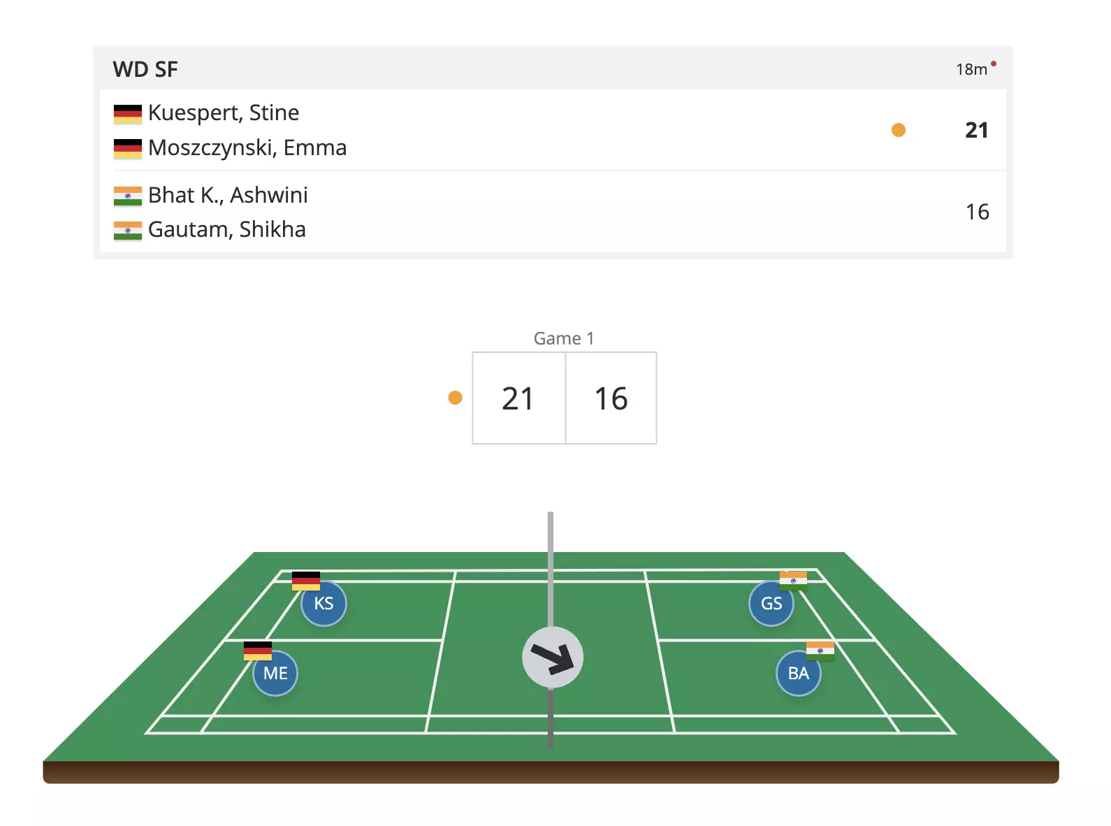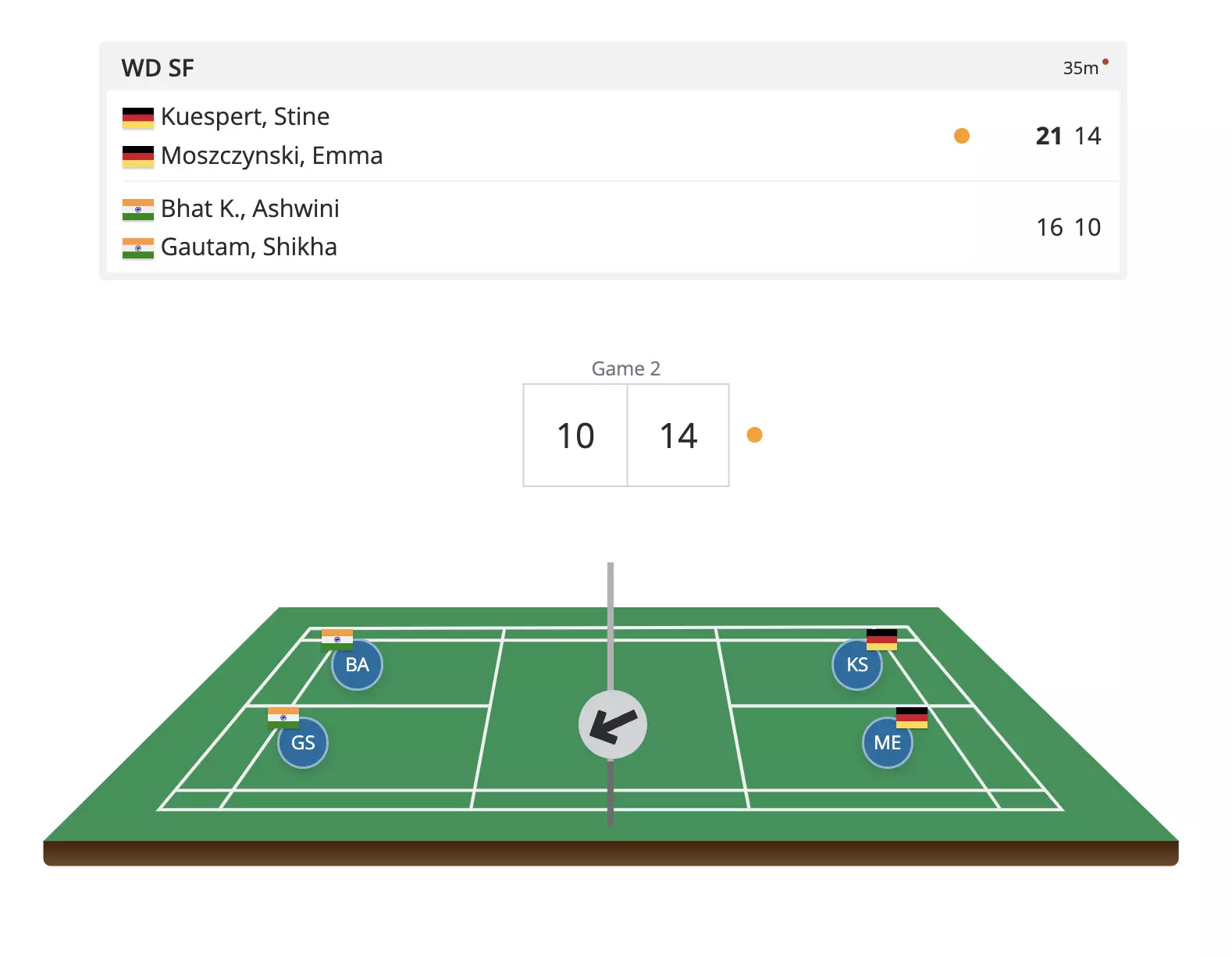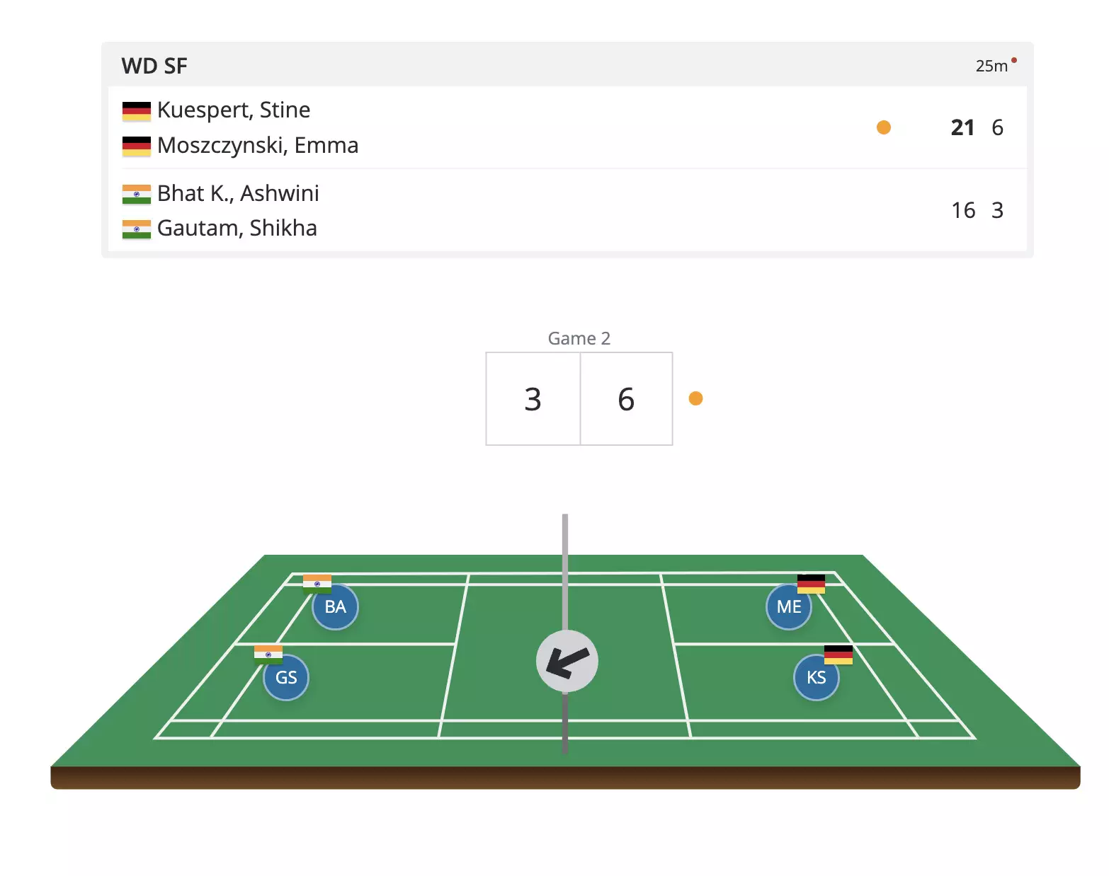 Ashwini-Shikha gave some resistance but it wasn't enough to delay the result as the German duo pocket the first game. Onto the second we go!