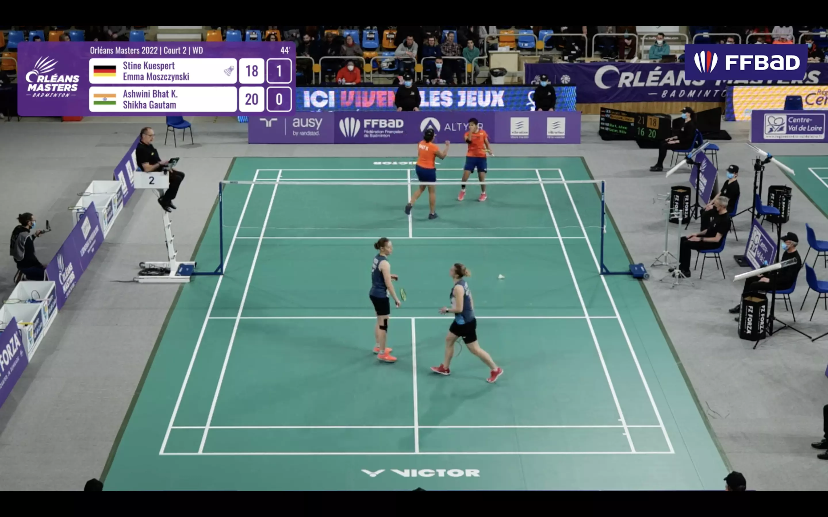 Ashwini-Shikha fall on the backfoot as Stine and Emma power on in this second game. The rallies are tensing up.