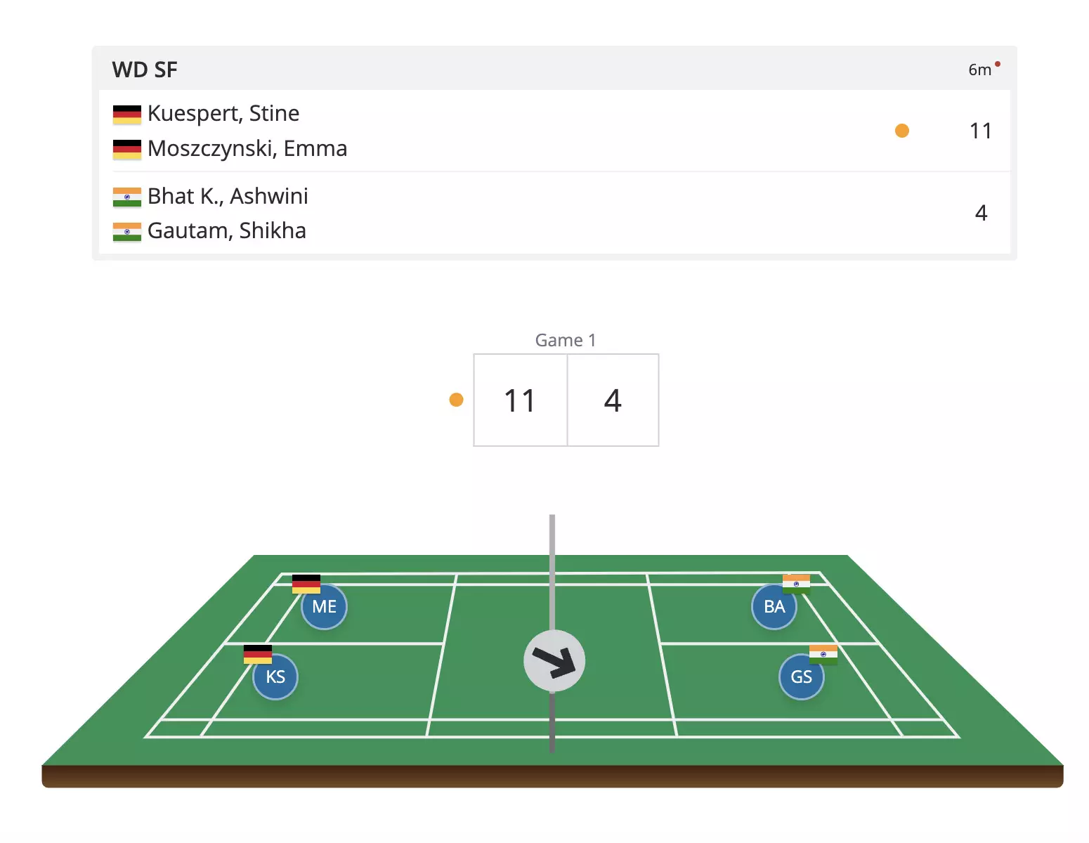 Ashwini and Shikha are up against Stine and Emma from Germany here!