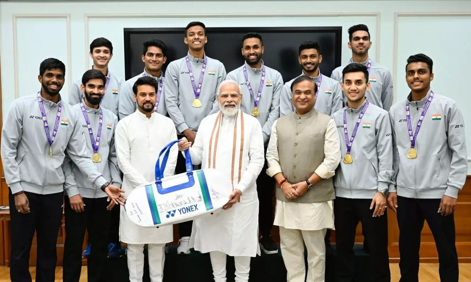 Few days after congratulating the players over telephone for their historic triumph at the prestigious tournament in Bangkok, PM Modi met in person and interacted with the Thomas Cup winning squad.