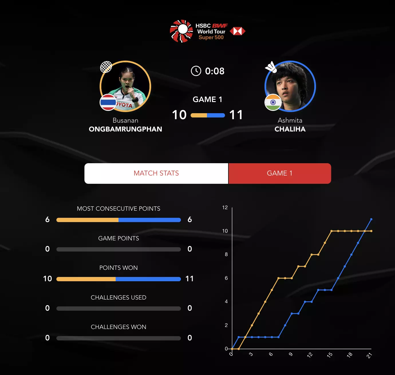 This is Ashmita's first meeting with the World No. 12 player from Thailand and so far, Ashmita has been impressing with her backhand flicks.