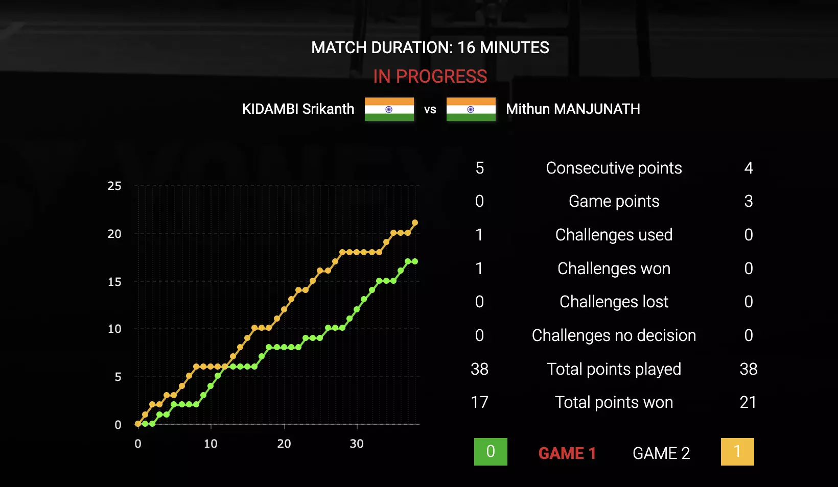 Mithun plays deceptive shots but Srikanth has the lead in this game