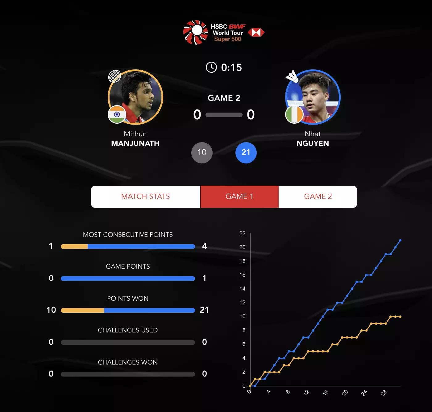 Nhat Nguyen wins the first game as Mithun's momentum is yet to kick in, the errors are coming easy.