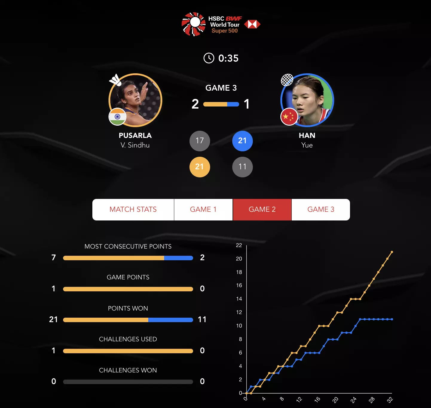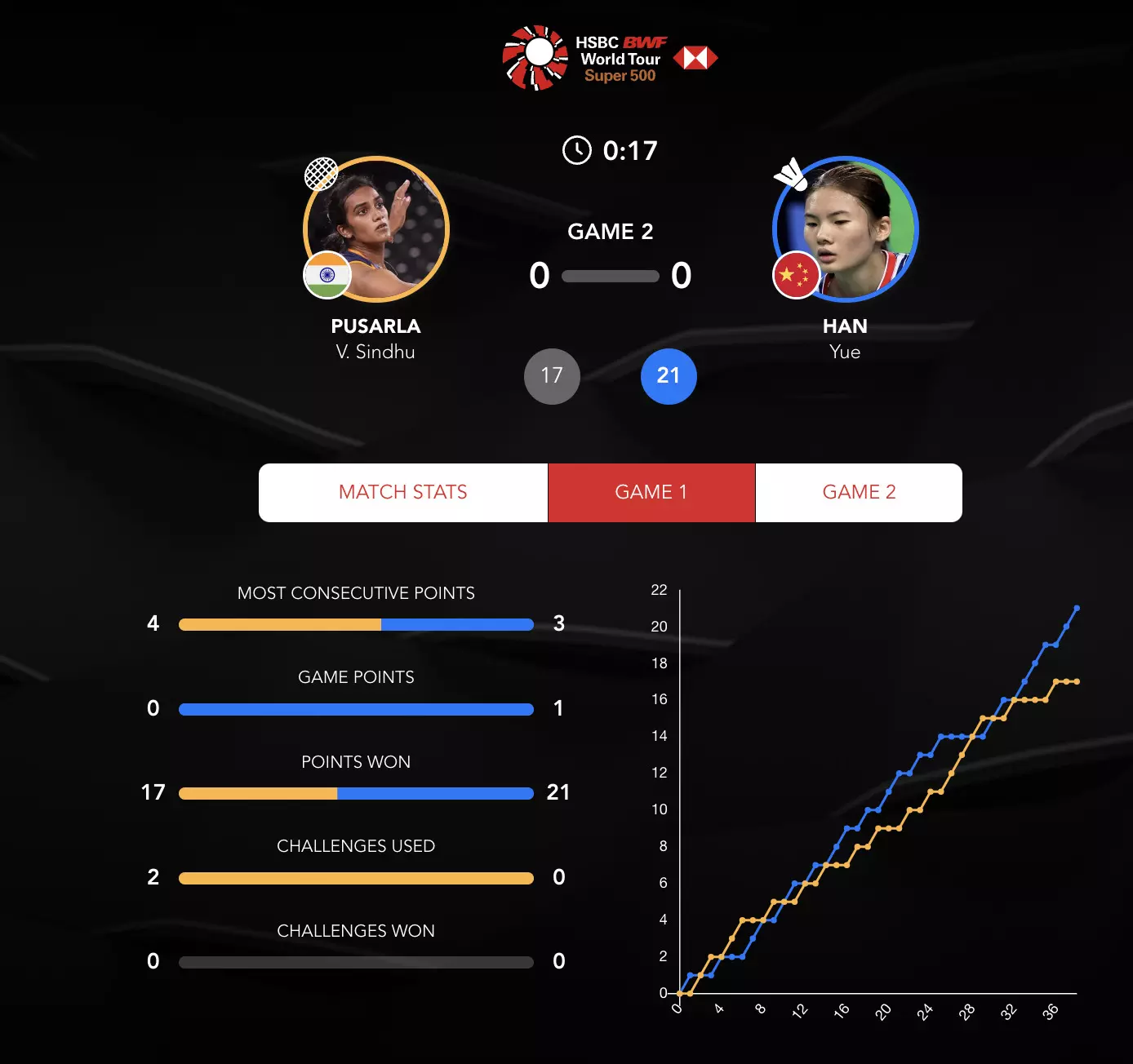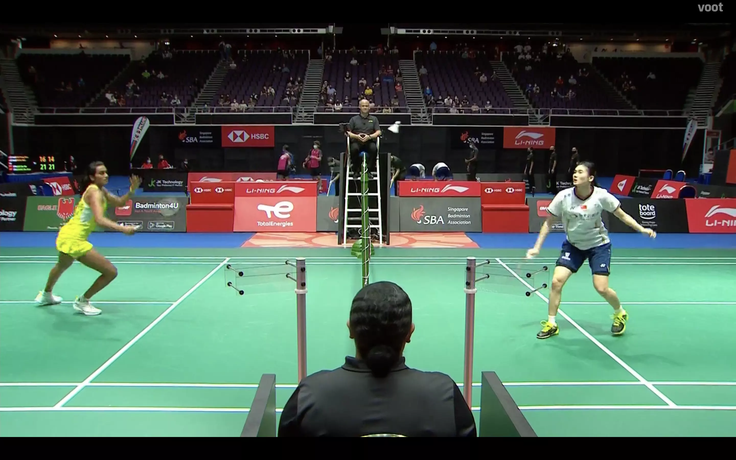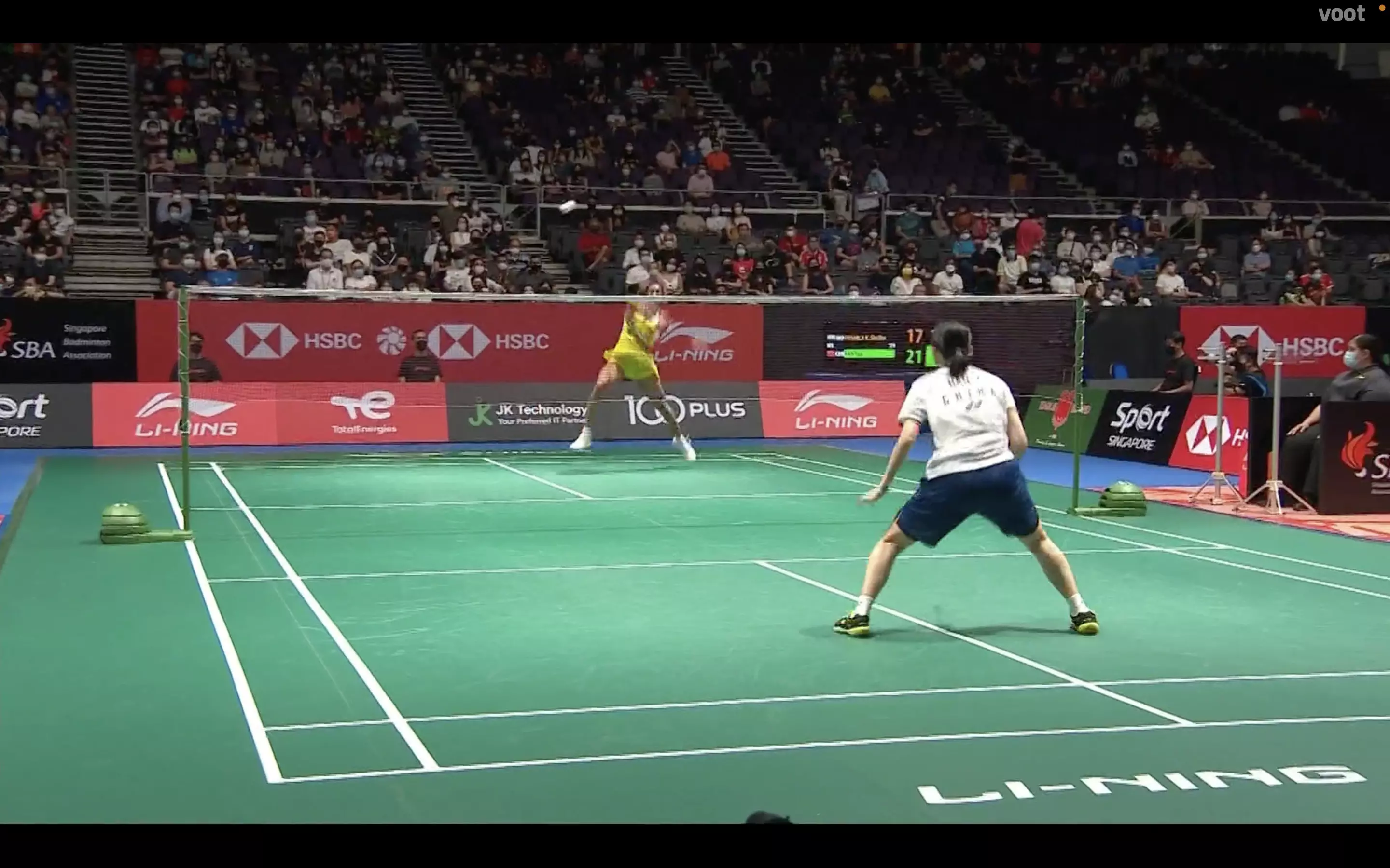 It is Han Yue who keeps the momentum in her stride and makes the lucky shots to win the first game 21-17. Quite a close game this was!