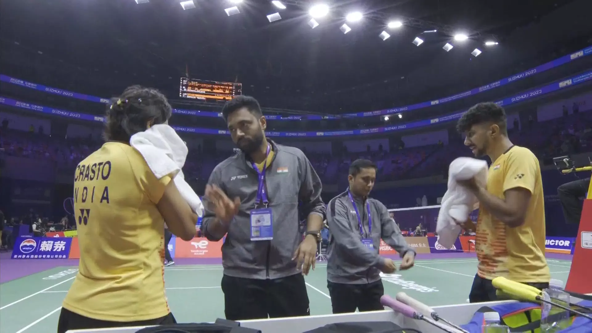 The Indian duo started with three consecutive points but Yang/Hu make a comeback with three points of their own and the tie is off to a great start.