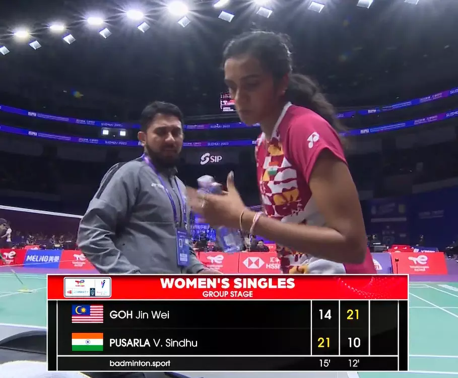 PV Sindhu trails 2-11 at the change of sides. The Indian camp has been taken surprise. They are on the verge of crashing out of the 2023 Sudirman Cup, if Sindhu does not get her act together.