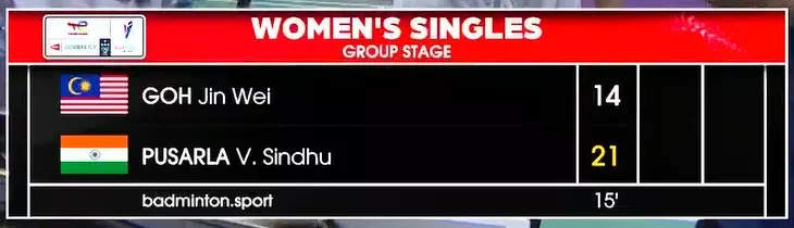 Goh Jin Wei takes wins the first two points of the second game to lead 2-0.