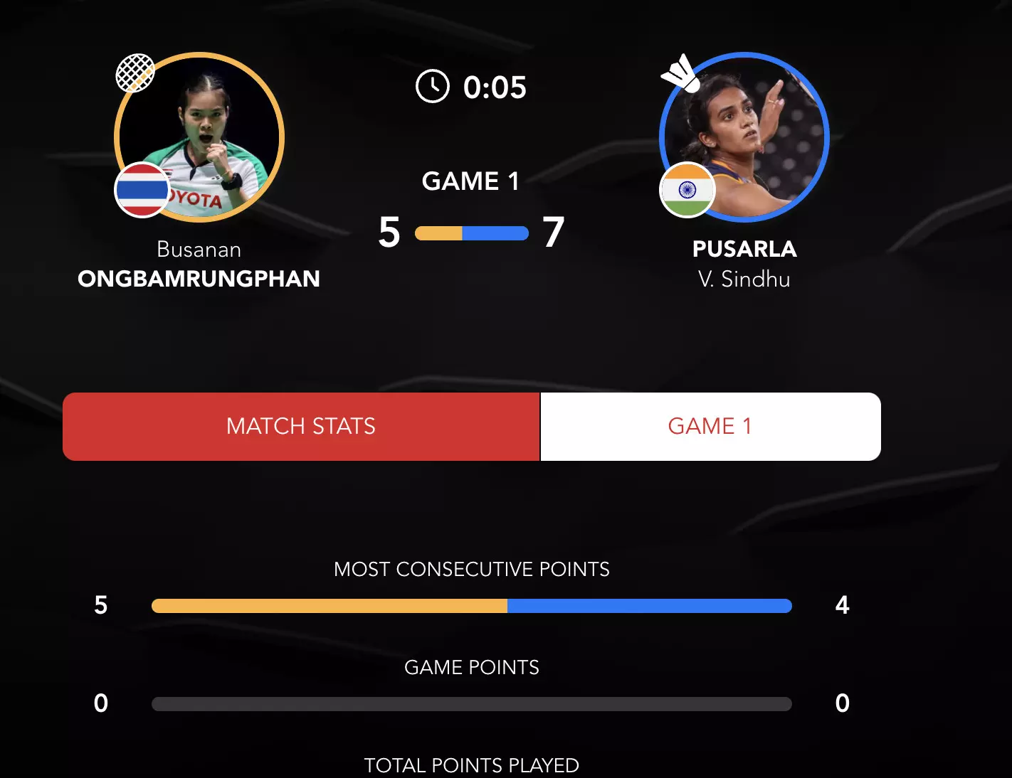 An intense first half of Game 1 so far with Sindhu leading with a 2 point lead.