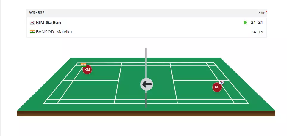 Malvika Bansod strides out to court number 1 after Srikanth's win. She is up against Korea's Kim Ga Eun.