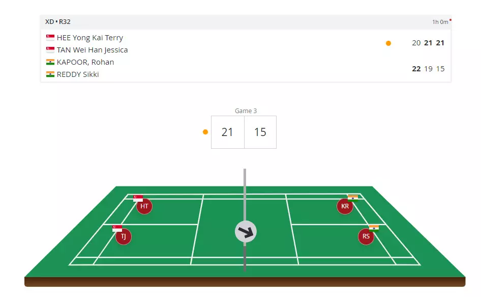 A stunning battle between Sikki/Rohan and Hee/Tan but the Indians eventually emerge on top to win the first game 22-20.