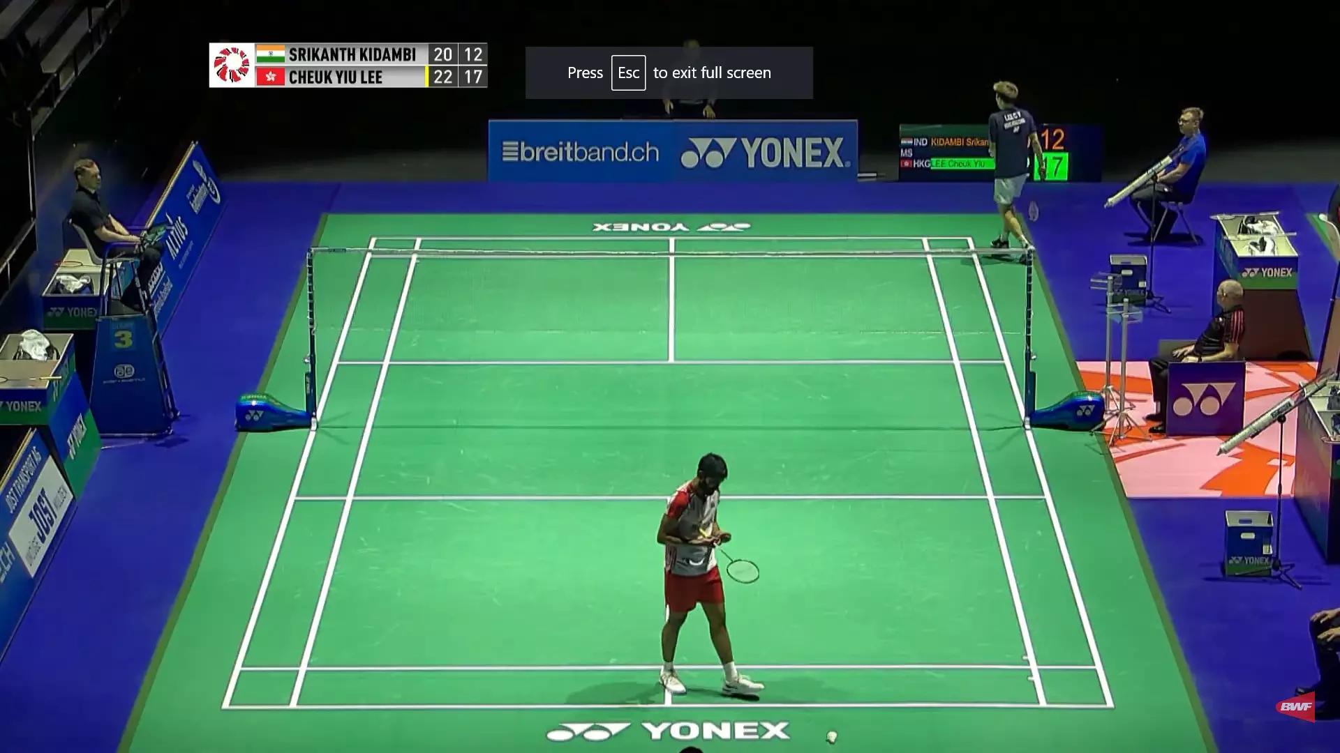 Lee has exposed Srikanth again in the back court and he is just four points away from winning this game.
