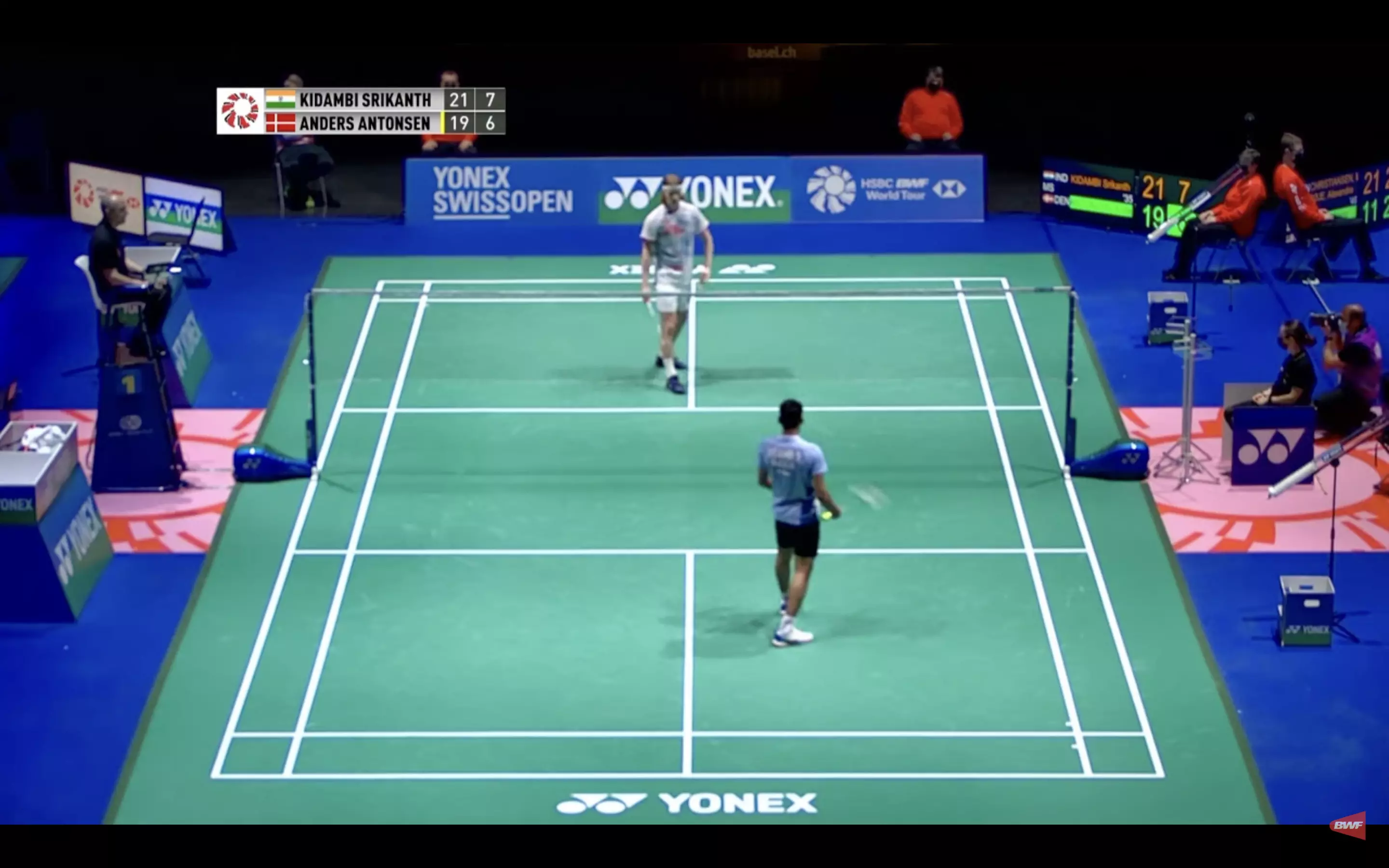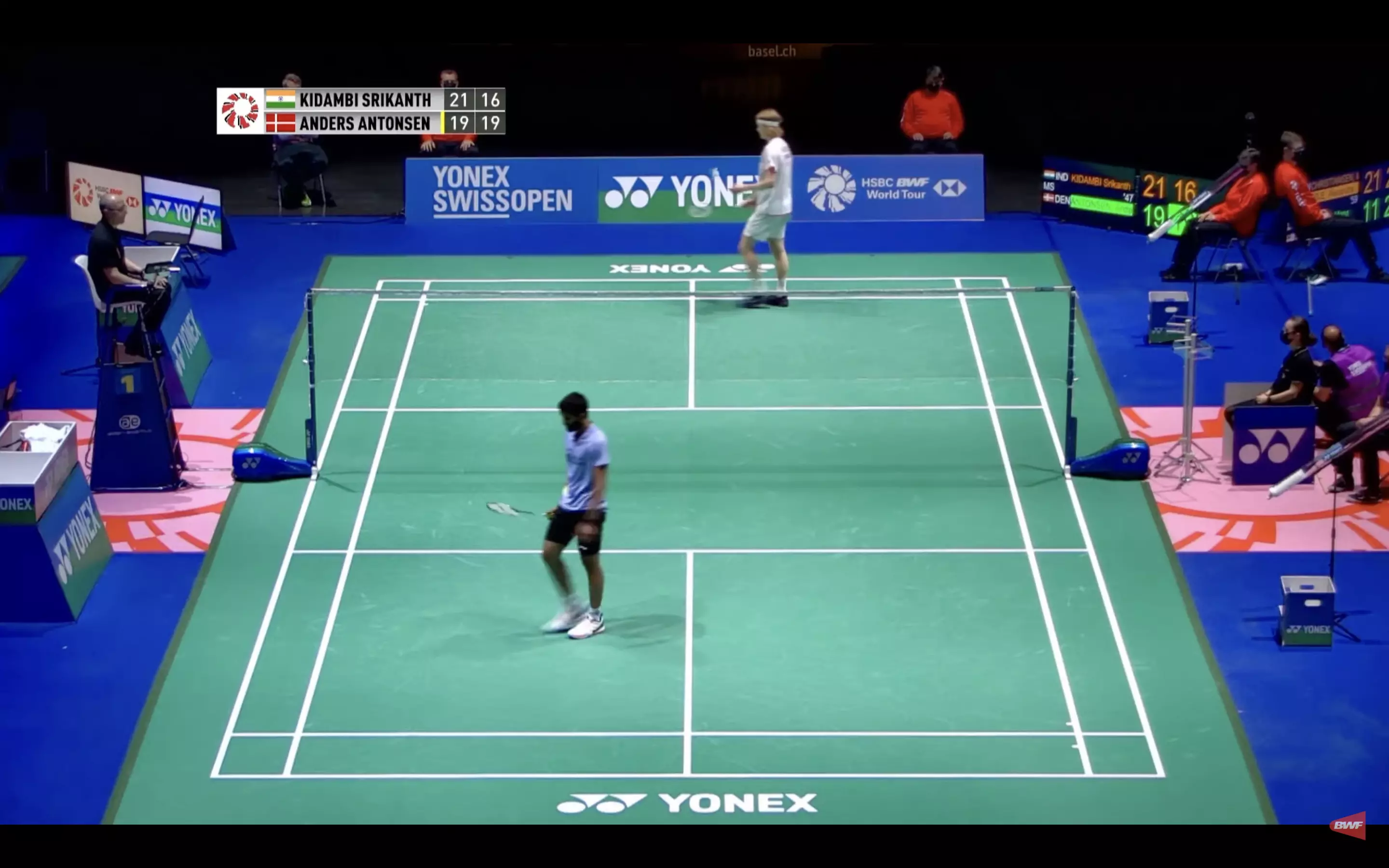 Antonsen fights off Kidambi Srikanth as he makes a wide return too and gives away the second set, 21-19 to take this match to a tense decider as they stay in hot pursuit of making it to the semi-finals!