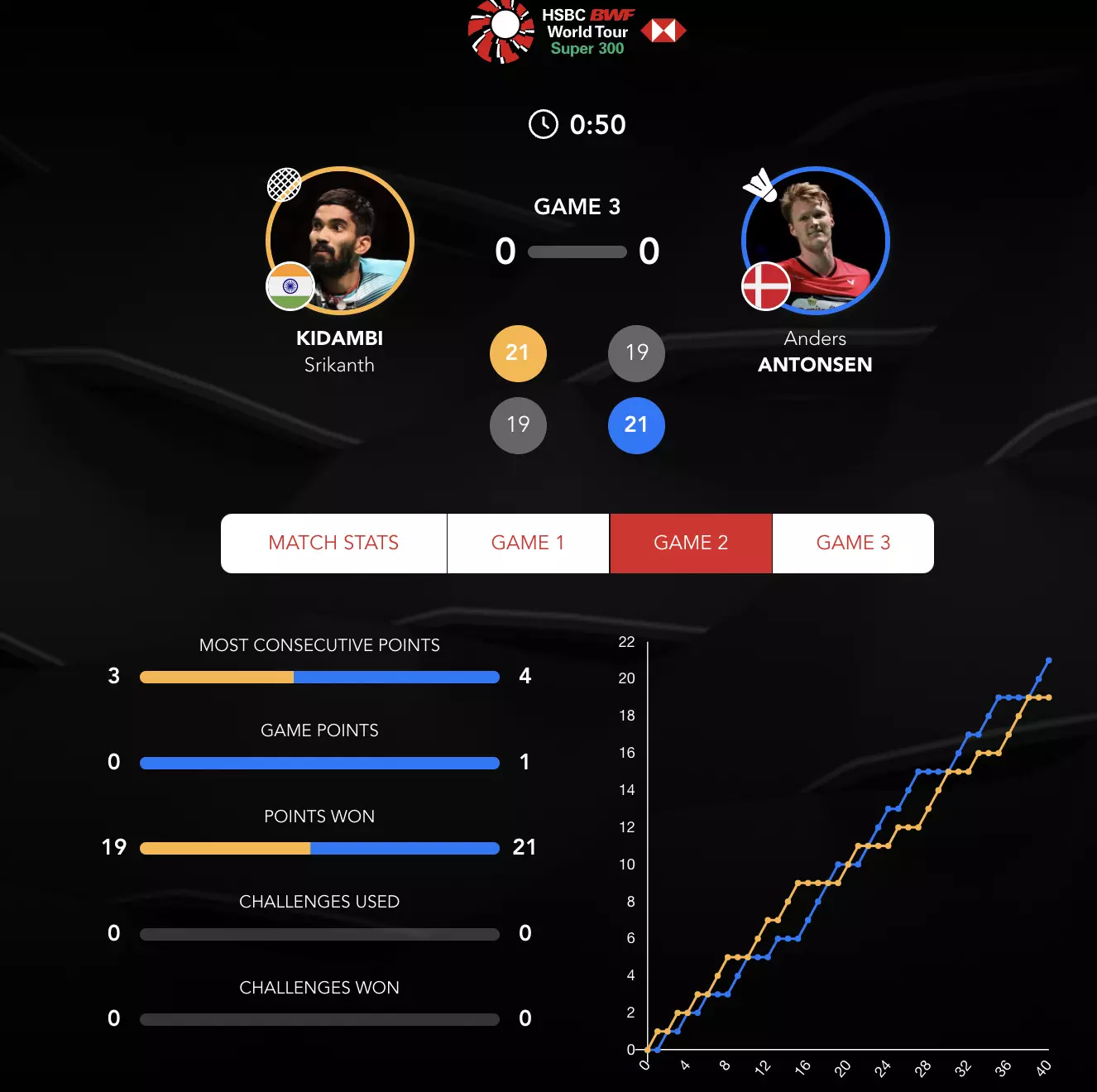 Into the decider, the battle is tense between Srikanth and Antonsen!